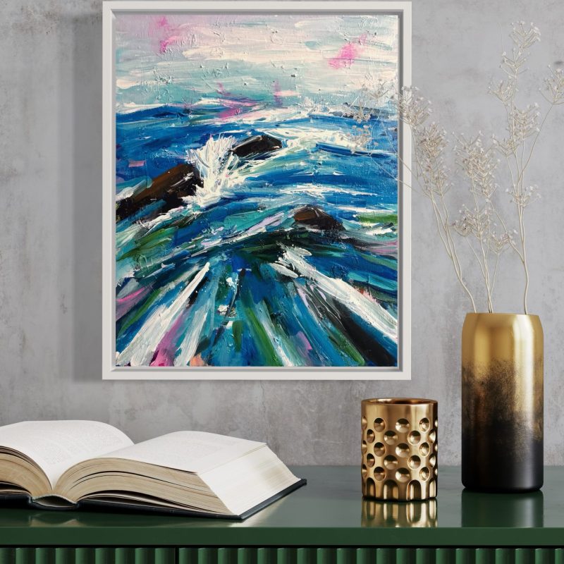 I view painting as sheer passion and feeling. Through my process I don’t seek to depict a set idea or subject, but instead I let scenes and dynamic movement emerge organically.