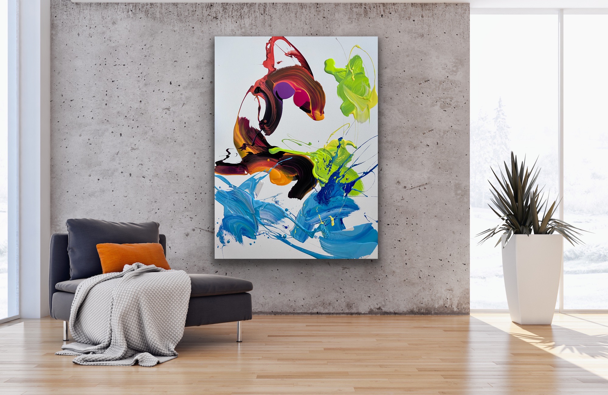 The flamingo  by Jonathan Redmayne is a new body of work that delves into the world of abstract expressionism. The journey began over 15 years ago, the works have become more complex and meaningful over the years. The layers are carefully thoughtout and are applied with raw emotion, each colour fights for survival to achieve the desired effect. Action, speed and movement take centre stage, each unique piece is a page of my personal diary.