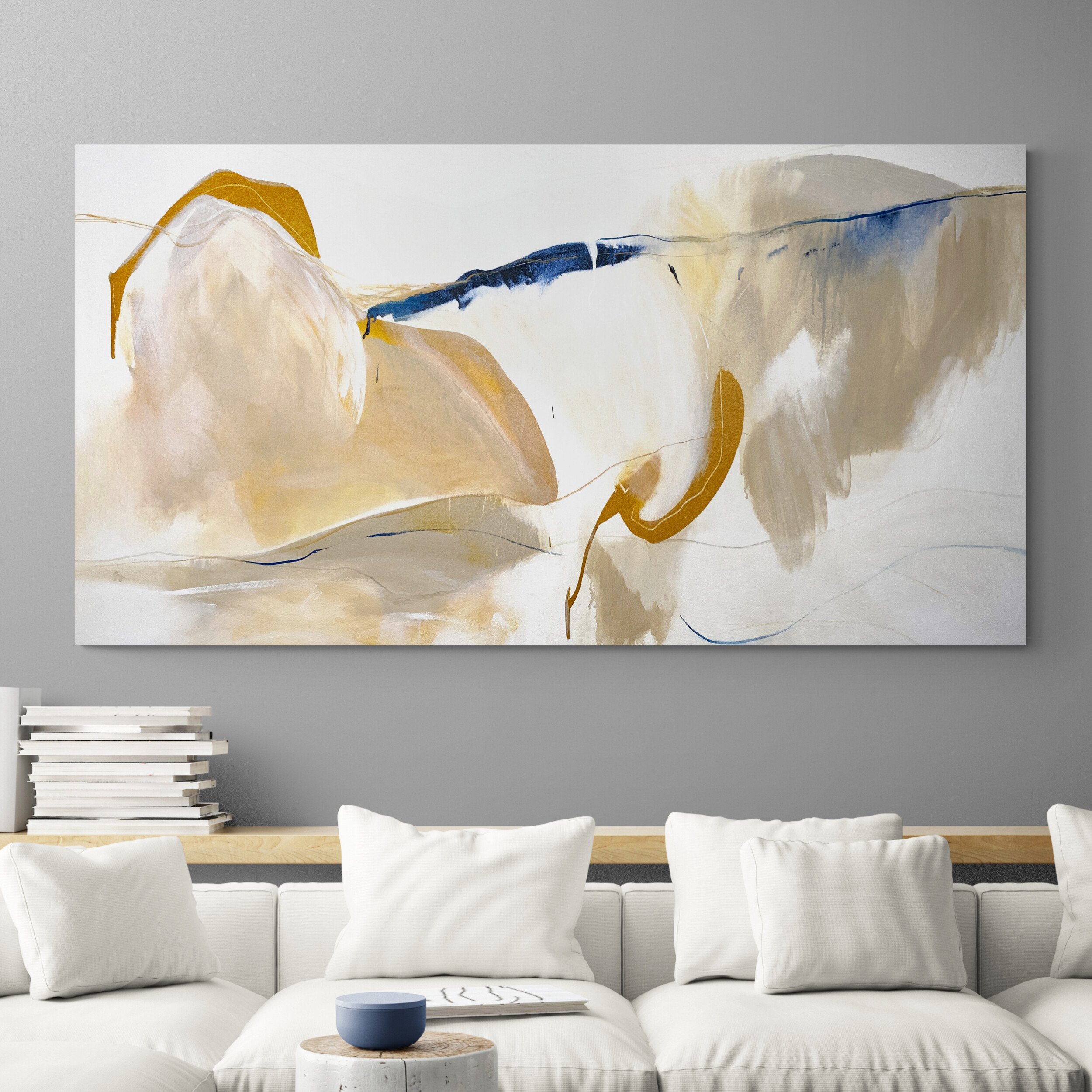 The Gap is the perfect for any large space. Its vibrant palette of light warm beige and browns, grey, bluey black and white makes the bold mark-making in this piece come alive.