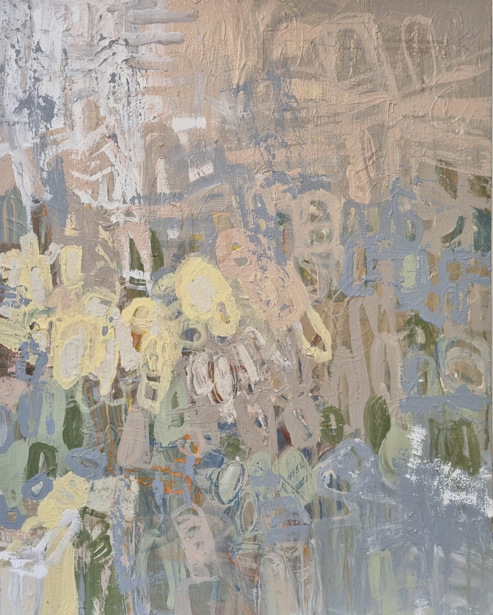 The Hills by Andrea Edwards – A richly textural, expressive and rustic abstract original artwork on canvas. It’s inspiration particularly is found in our natural environment, bush and waterways. Shades and dilutions of stone to mid/light muted browns, soft yellow, hints of orange, khaki, grey, light sage, buff, winter whites and taupe neutrals.