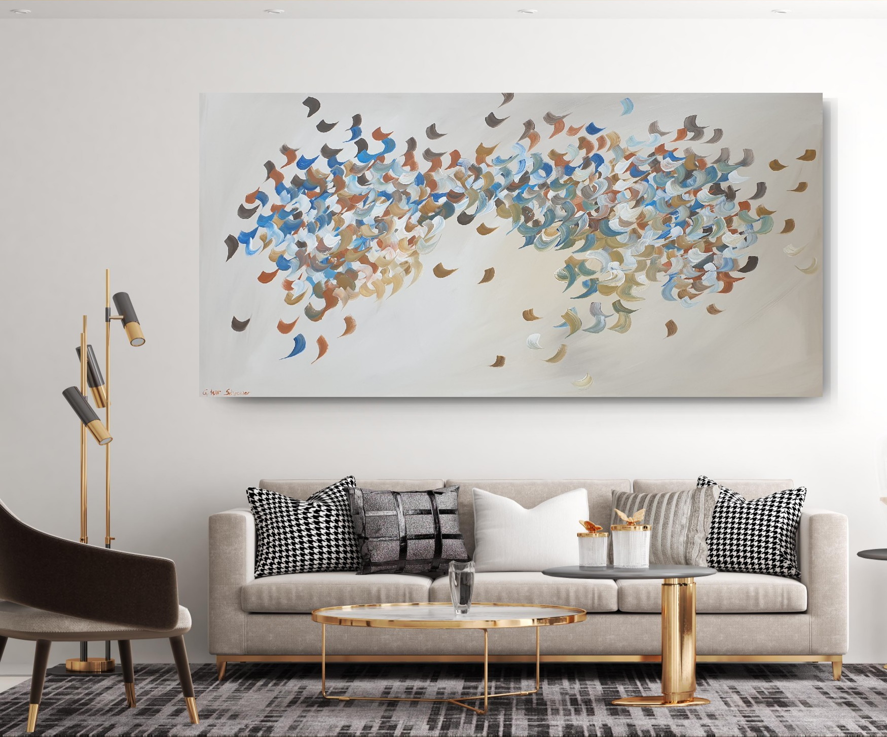 I view painting as sheer passion and feeling. Through my process I don’t seek to depict a set idea or subject, but instead I let scenes and dynamic movement emerge organically.