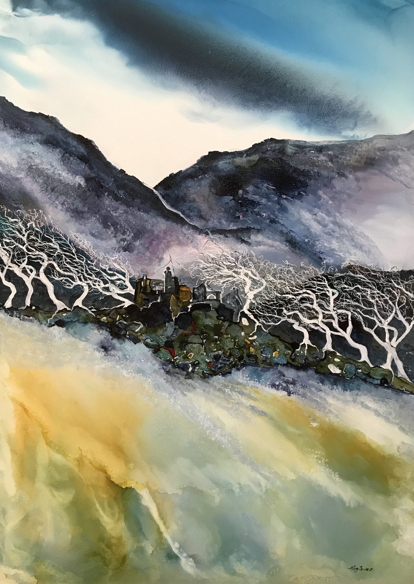 I thought this an interesting poem to put with my painting of the old cottage and it’s withered trees.