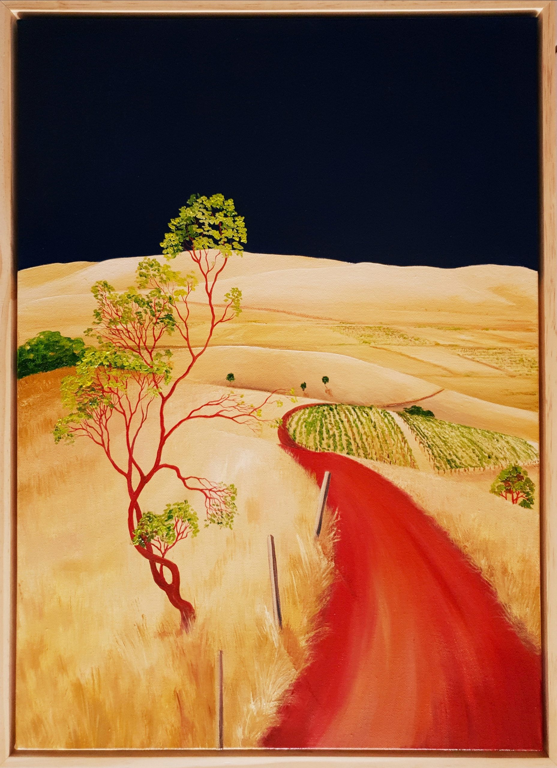 I really enjoy dark intense colours and these new road paintings are offering a great way to use the colours of Australia. This series has the inspiration from the The Red Road by J K Ewers.