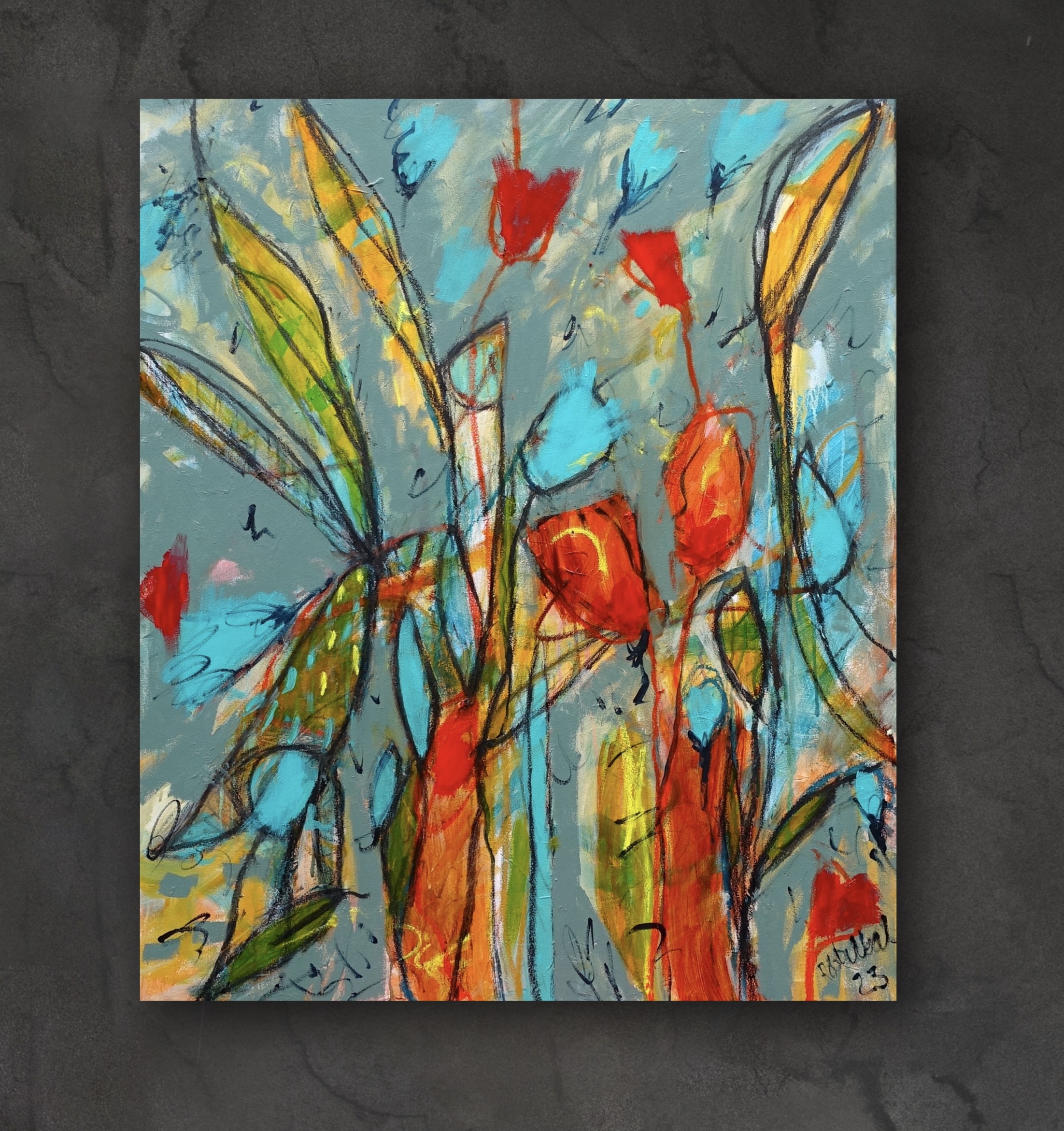 This work is oil and acrylic on 91 X 76 cm on Luca Premium Professional Canvas, stretched onto a kiln dried frame, wired ready to hang, signed on the front and sent with an artist cv and certificate of authenticity.