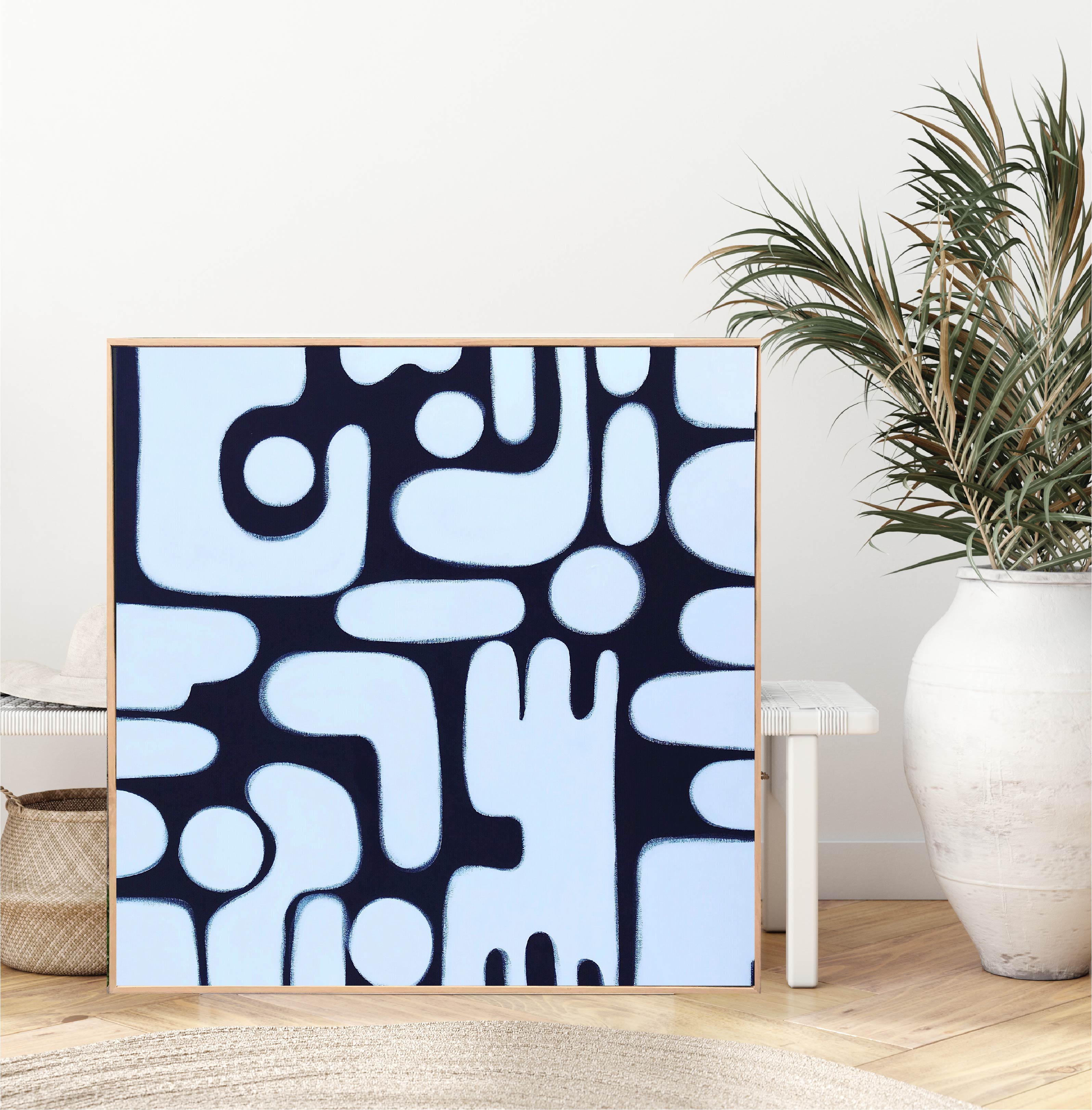 Black Acrylic Paint on a white background professionally framed in a raw Tasmanian Oak floating frame.