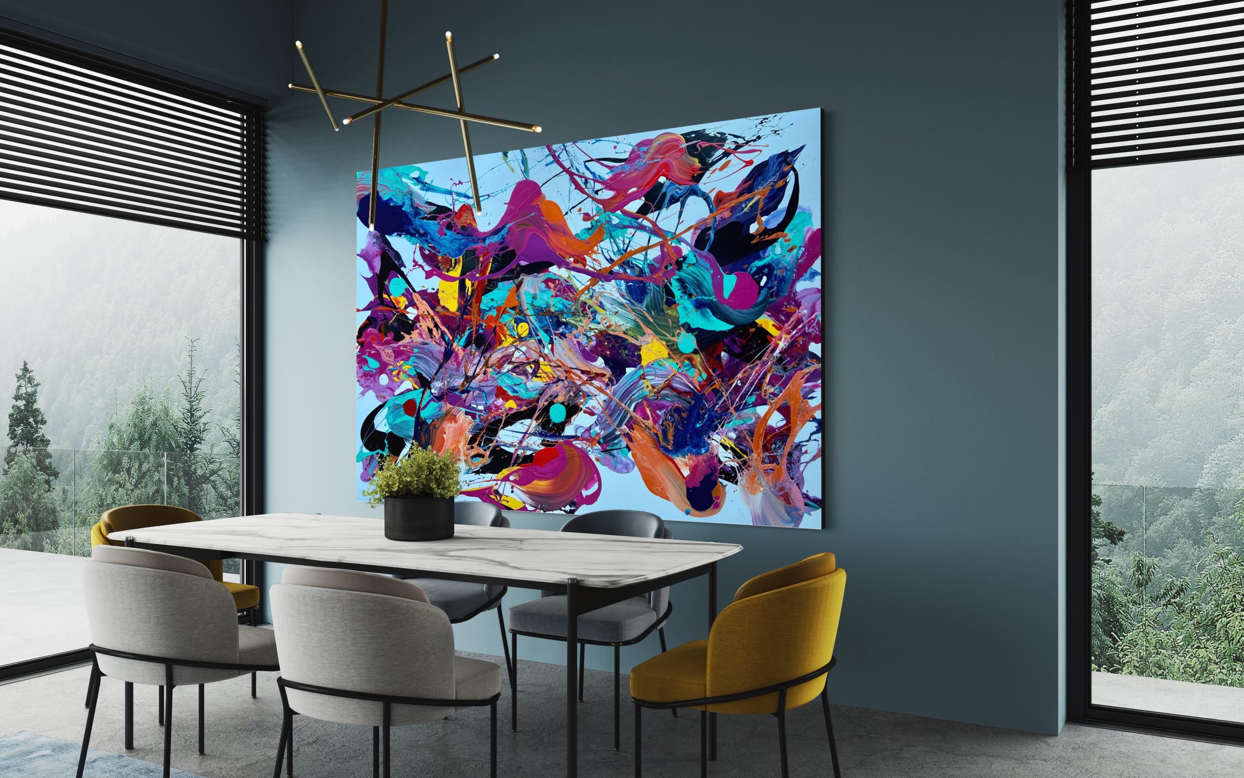 The Next Chapter by Jonathan Redmayne is Another edition from my popular collection “Narratives” a series of paintings that are carefully arranged by showcasing organic shapes that orchestrate a narrative of conflict and harmony, fragments of contrasting colours created through blending brushstrokes, abstract signatures and sculptural like curves.