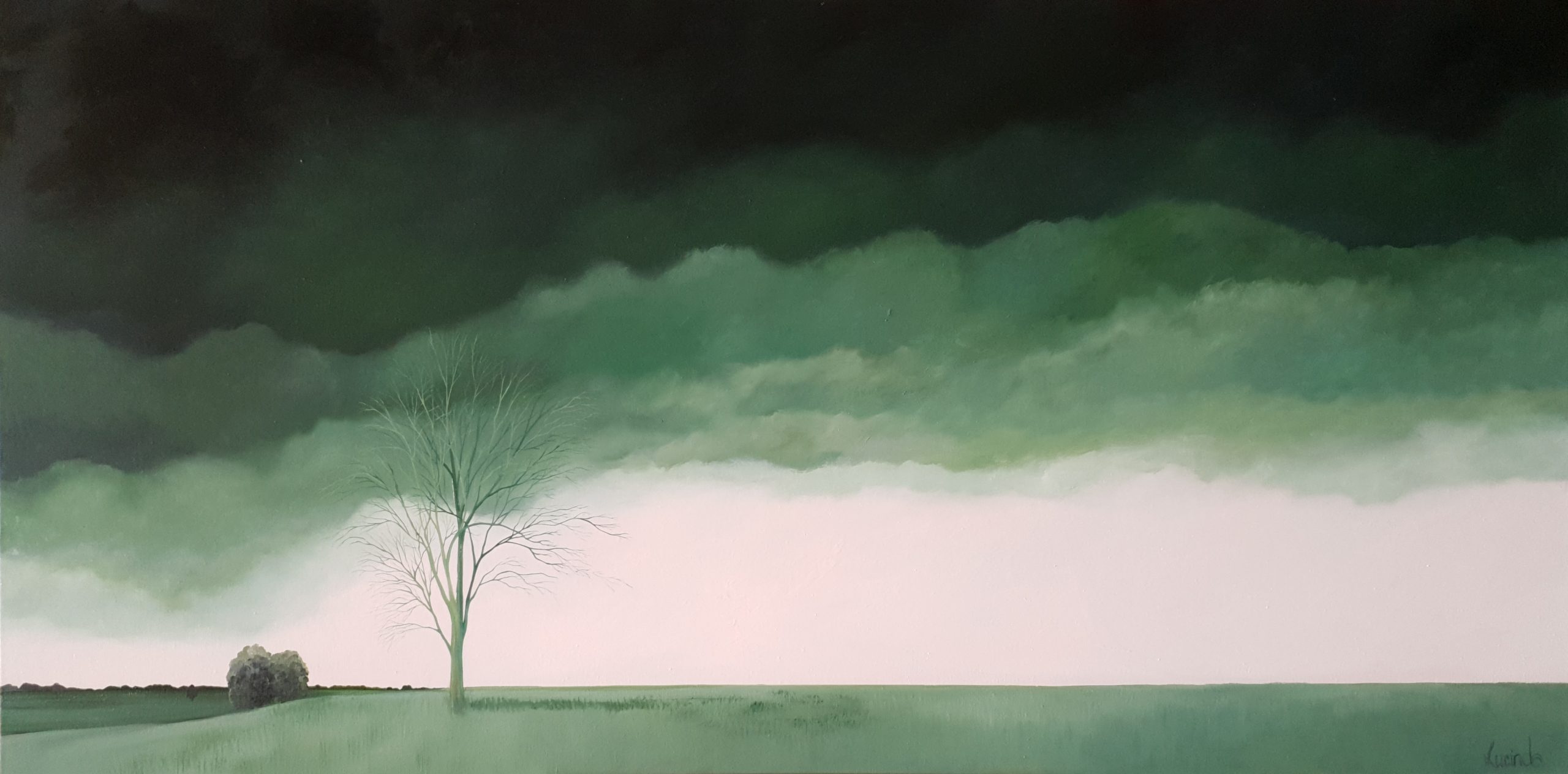 The Pace Of Nature by Lucinda Leveille is a large piece and borders the two series I am currently exploring with my brush – exploring the solitary and the road series.