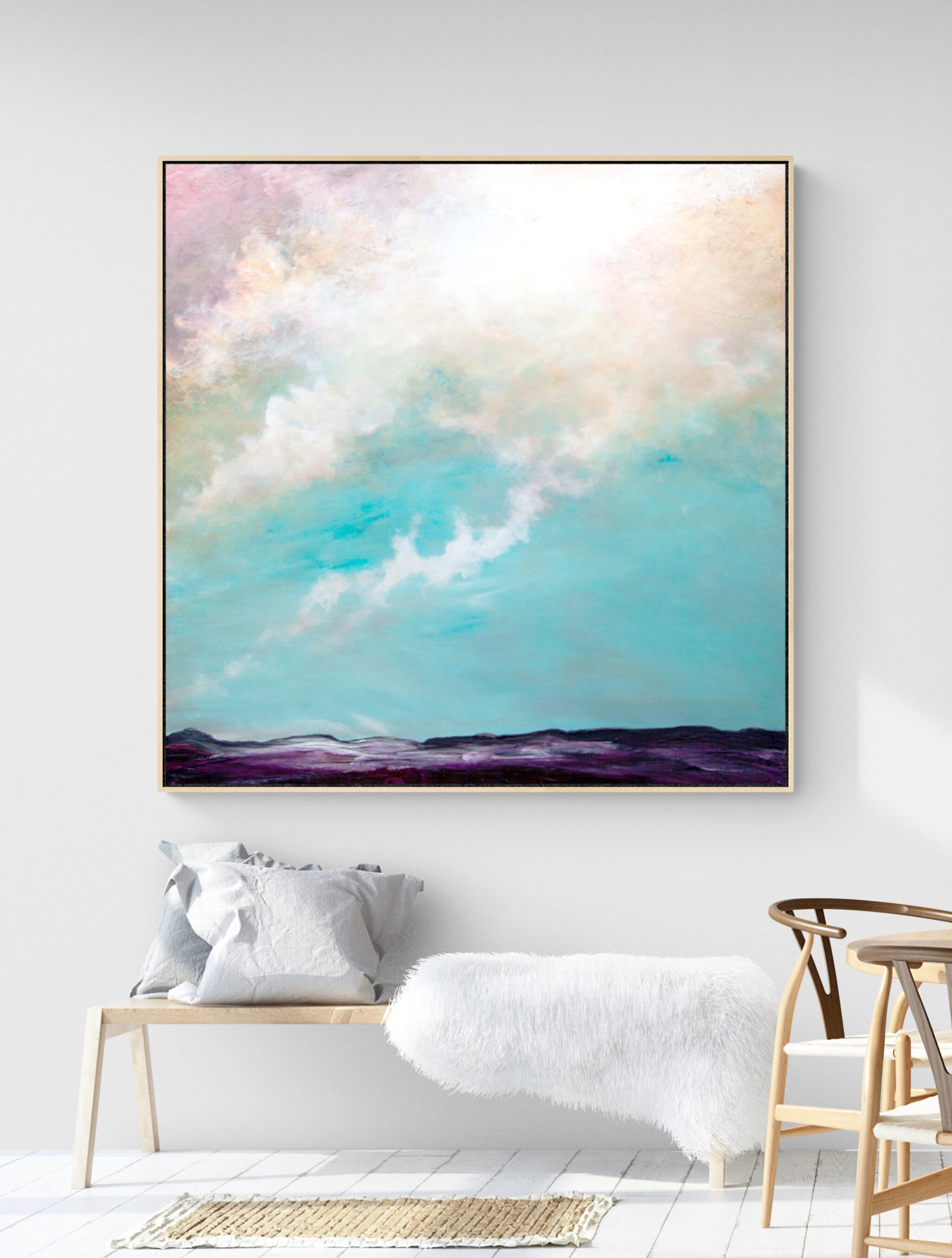 The Passing Of Time by Tania Chanter  is inspired by the atmospheric Australian sky and the changes of light and mood throughout the day. Tania’s hope is that this painting brings a sense of calm to the room where it lives, and that is makes the people who enter the room feel as though a part of nature is right there with them.