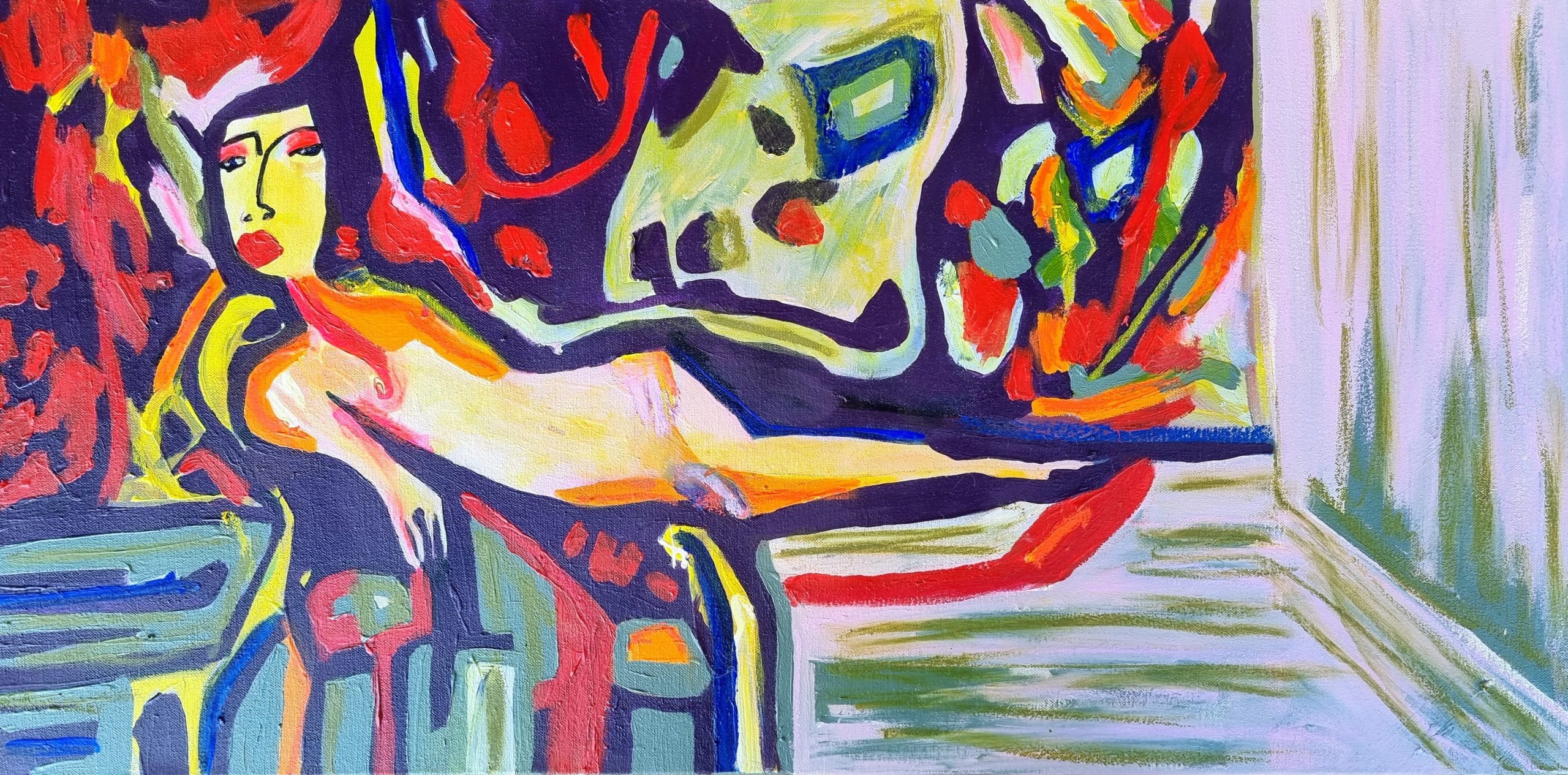 Acrylic ink and oil pastel on stretched canvas