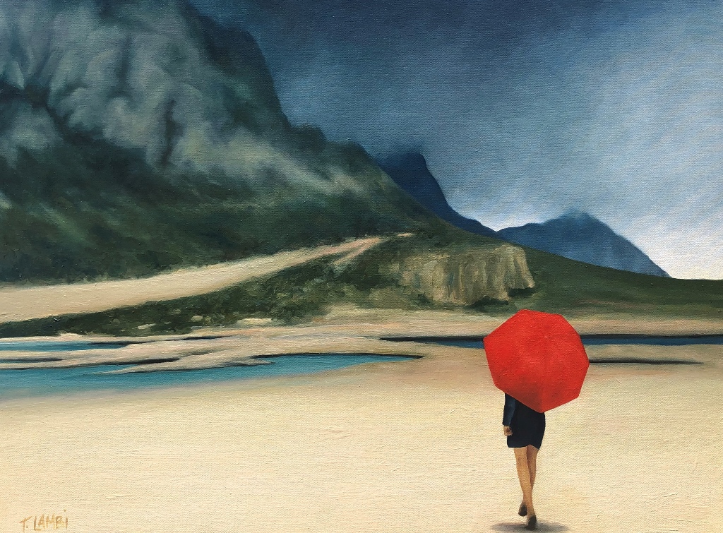 Inspired by the beautiful Balos Lagoon in Crete, Greece. The jaunty step of the girl combined with the pop of red in the umbrella speaks to me of optimism in the face of impending doom. I was reminded of my favourite book from my childhood, Pollyanna, where the heroine would put a positive twist on everything.