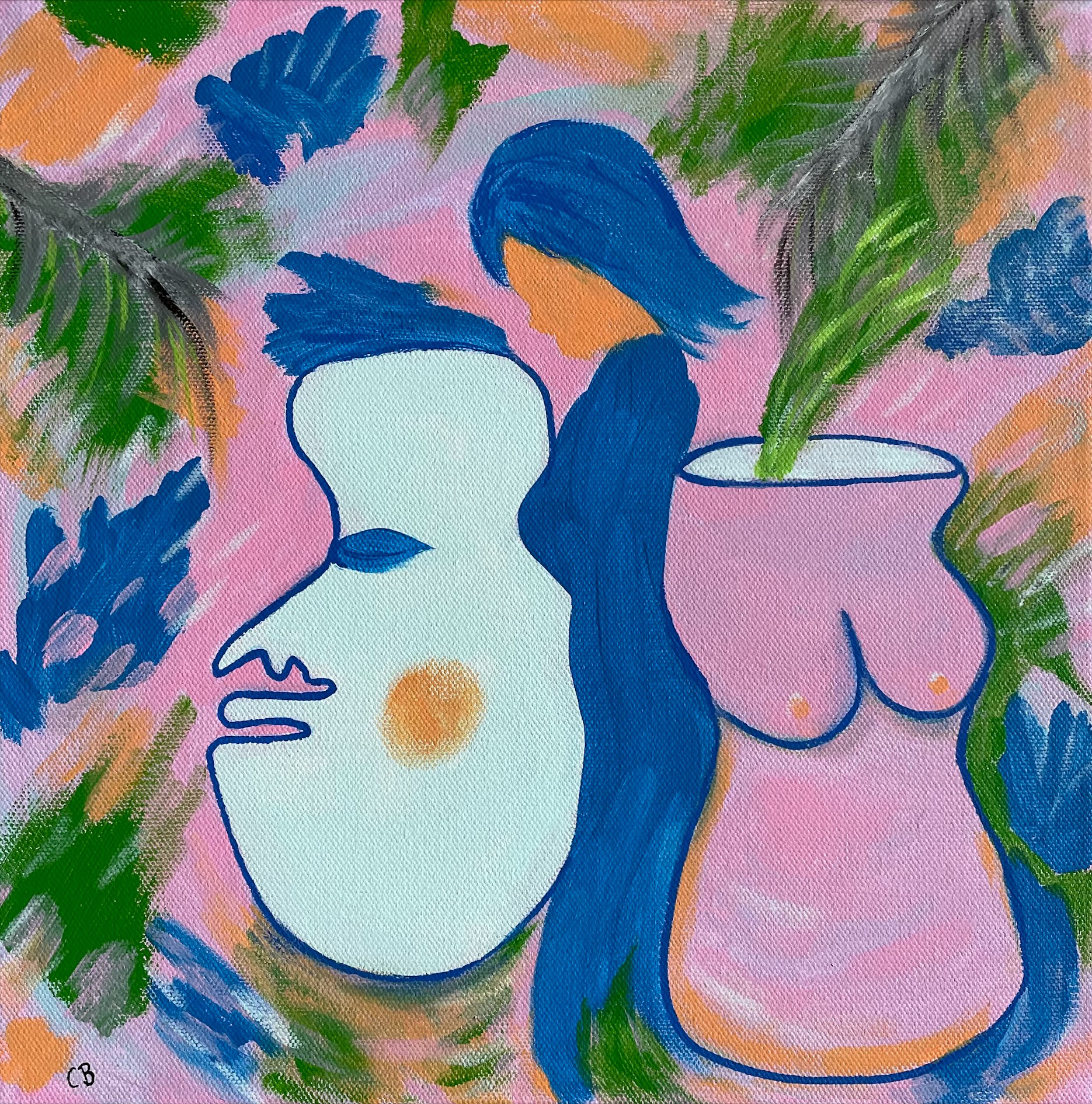 Pottery is loaded with symbolism. Its presence in dreams represents renewal, regeneration, and harmony. In my painting, the potter appears in their dream, imagining what they will create when they awake.