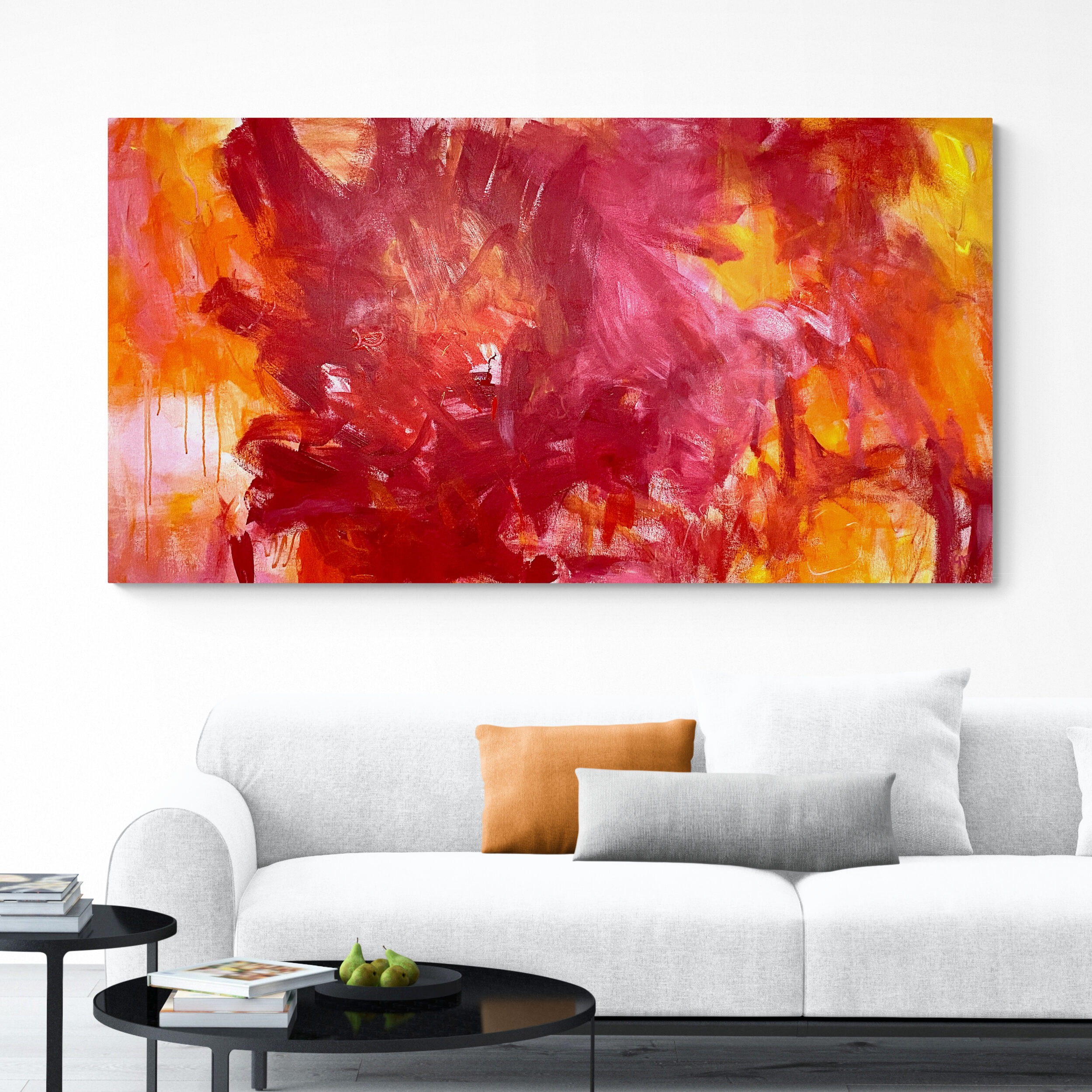 Enjoy roaming this latest expressionist piece ‘The Power Of Love and its vibrant multi-coloured warm palette of of oranges, yellow, pinks, rose red and magenta with a touch of white.