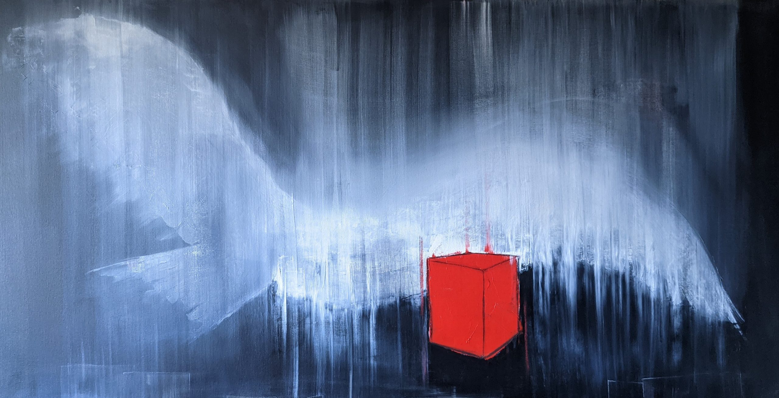 The red cube is like a stamp saying that this is my interpretation of a bird… it’s not a painting of a bird as such.