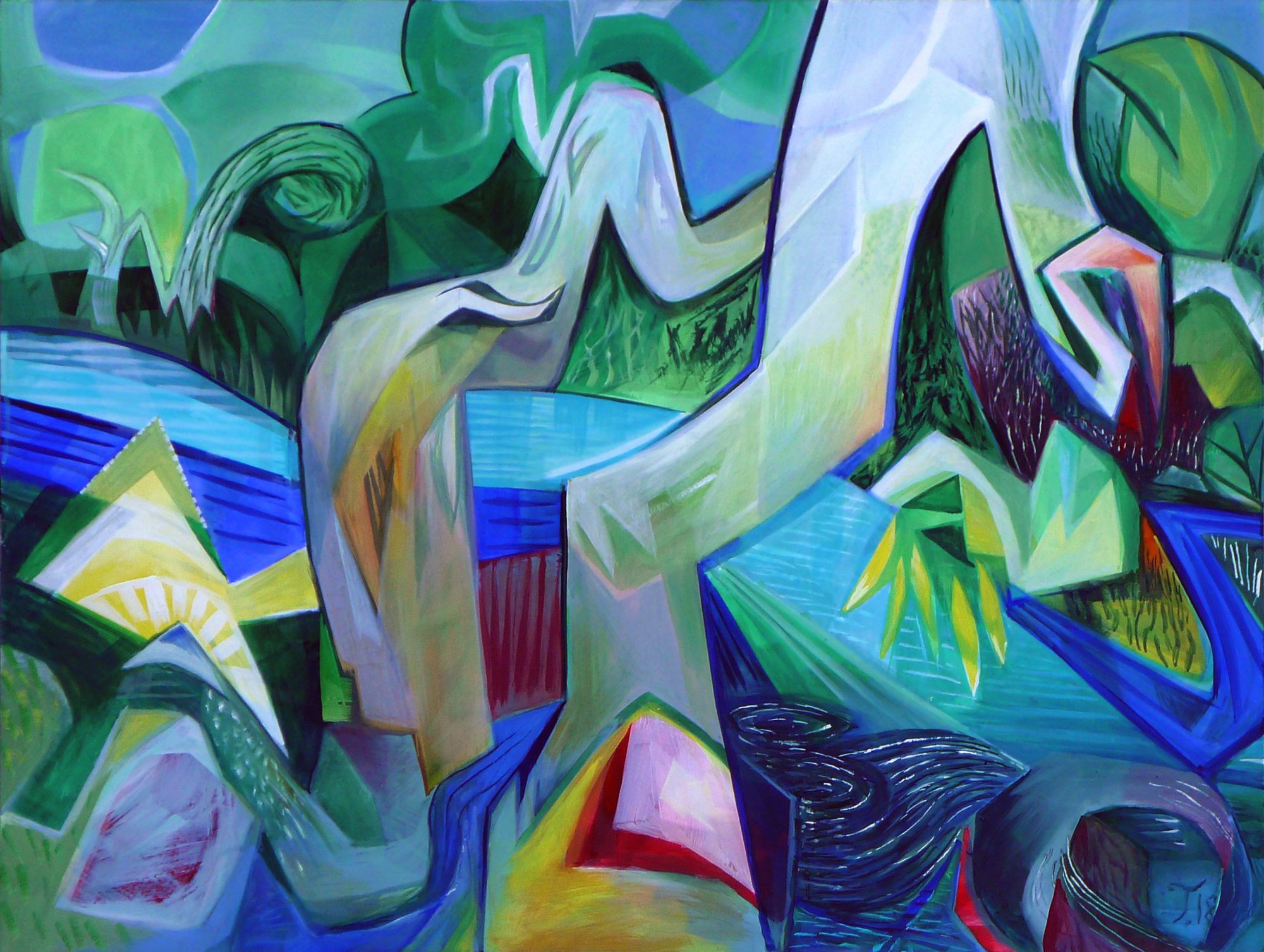 Flow Acrylic on cradled panel. Gloss varnished with UV protection, panel edges sealed with black lacquer. Ready to hang with D-hooks and cable.