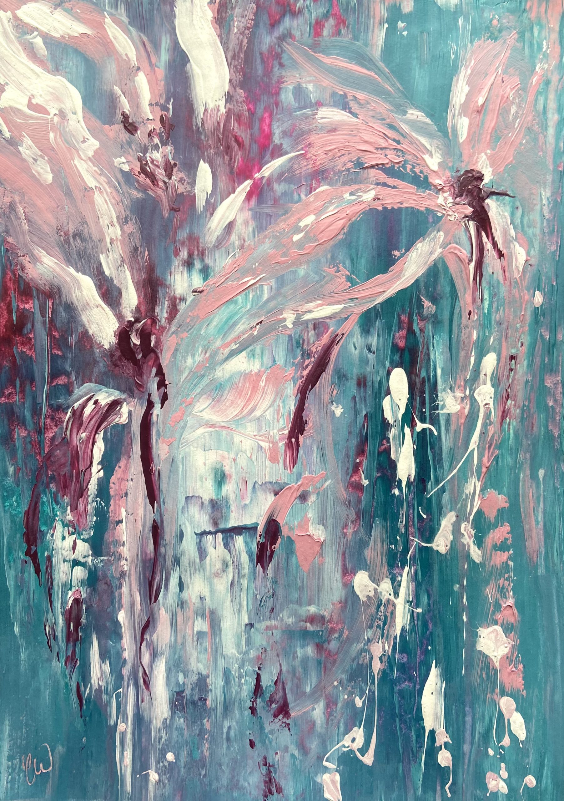 The Sanctuary by Carrie Welsh is a beautiful abstract botanical painting that has a soft and whimsical feel. Some images show what this piece looks like framed. Frames not included. 29.7 x 42 cm (A3 size) Acrylic on paper. Requires framing.