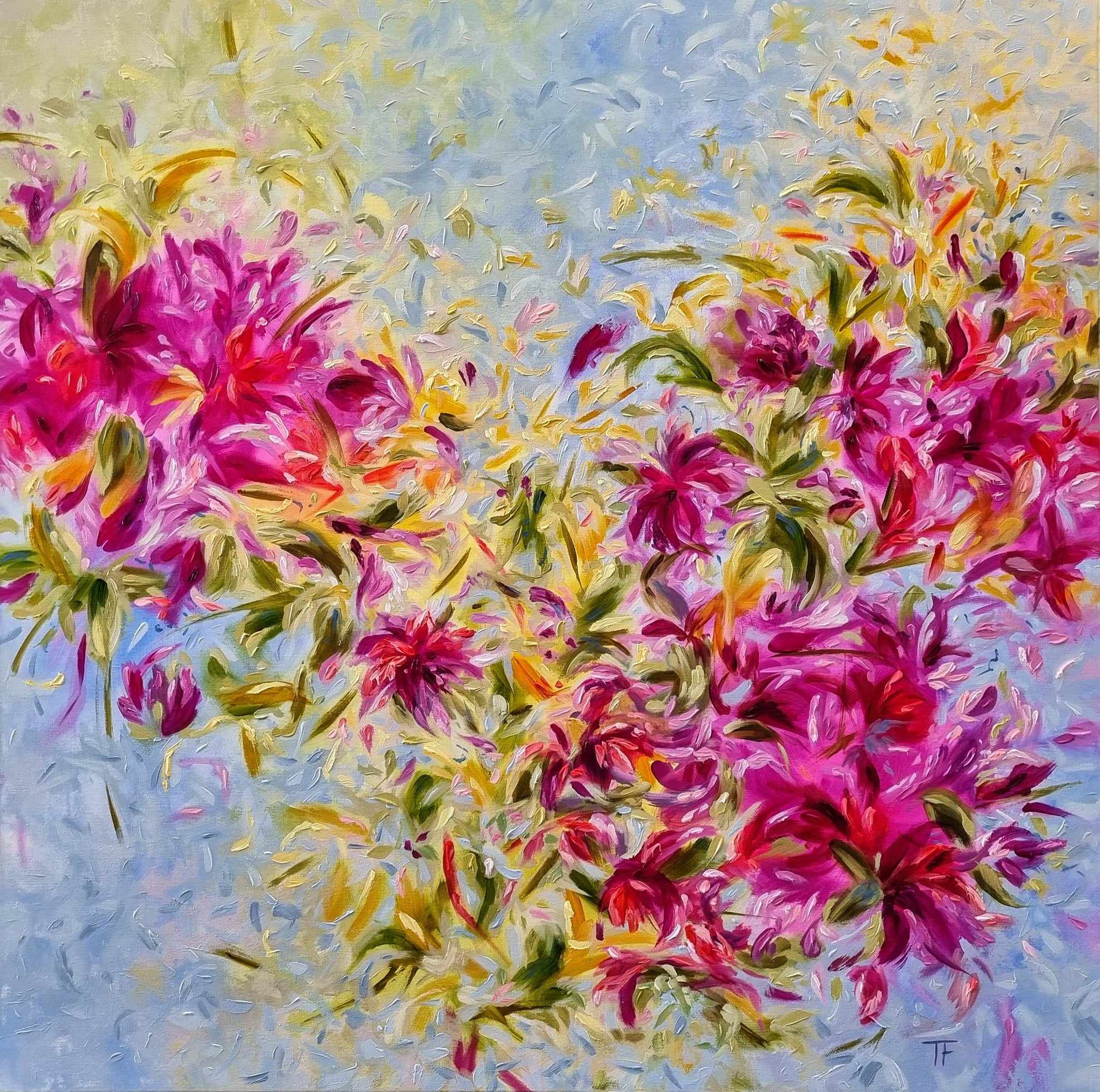 The Scent of Spring – Textured Floral Abstract Oil Painting – by Tania FitzGerald – Signed on the front and on the back