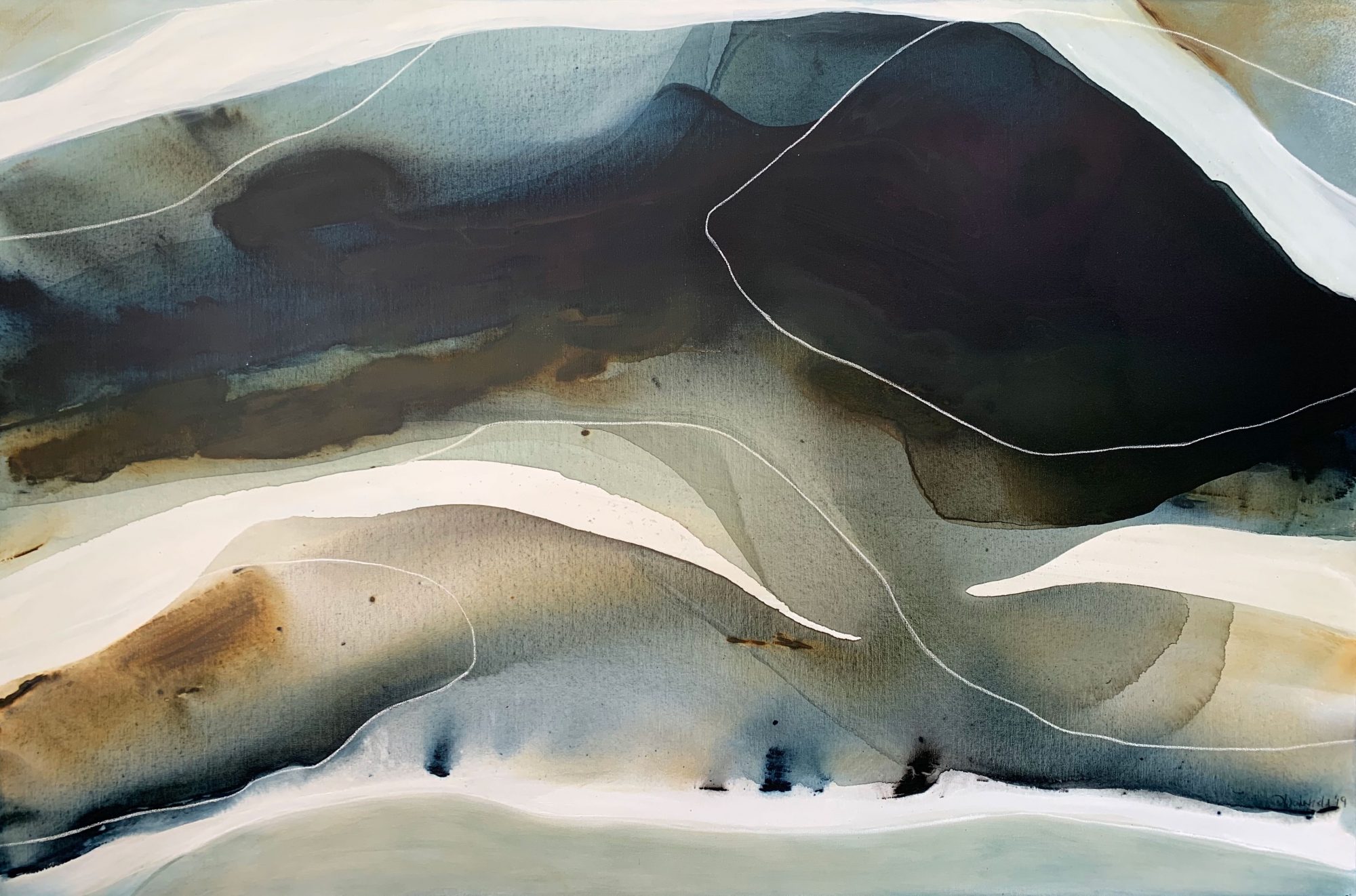 The Shape of Water 2 is inspired by the light, the colours and the natural beauty of the Noosa region of Australia. “What I love most about Noosa is the interplay of light. From the oceans to the clouds, to the river estuaries and the hinterland, this canvas unfolds before me every day and finds expression in my paintings”.
