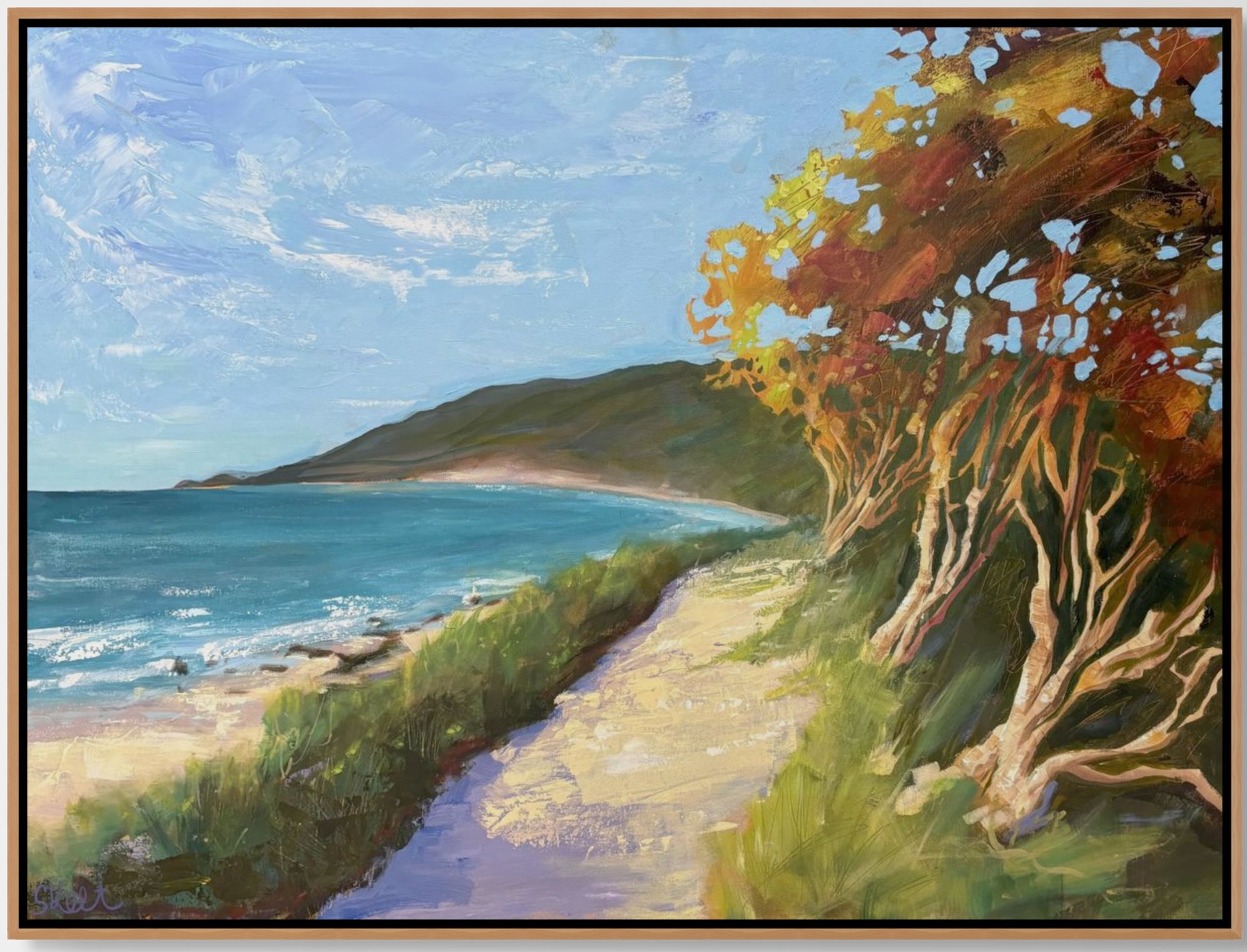 Yallingup and the whole of WA’s South West continue to call me, I find never ending inspiration from the rugged coast line and the extremes in the weather. I love the windswept trees along this coast and you will find they feature heavily in my current works.