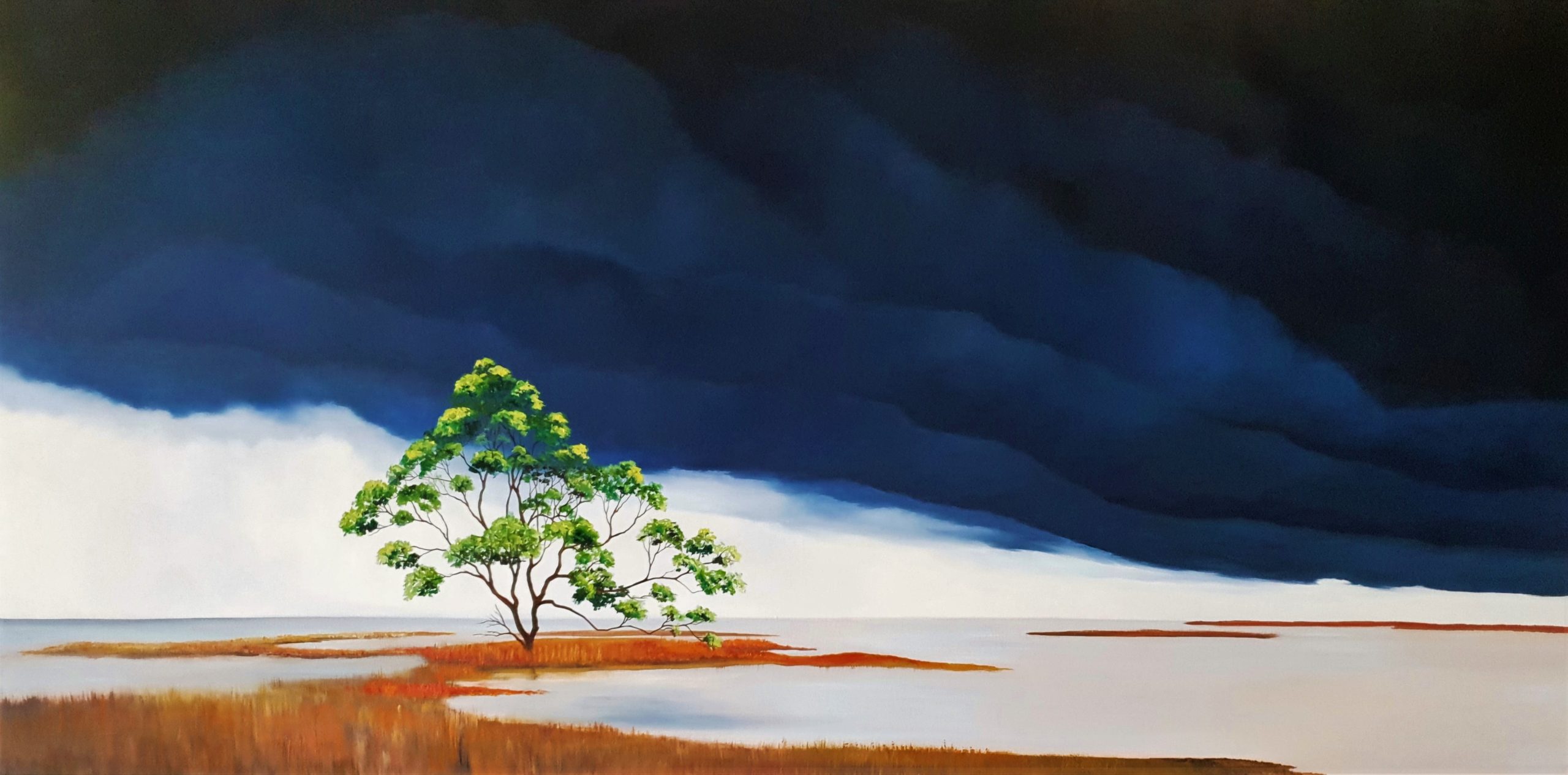 The Silence and Stillness of Nature by Lucinda Leveille is a large landscape executed in oils.