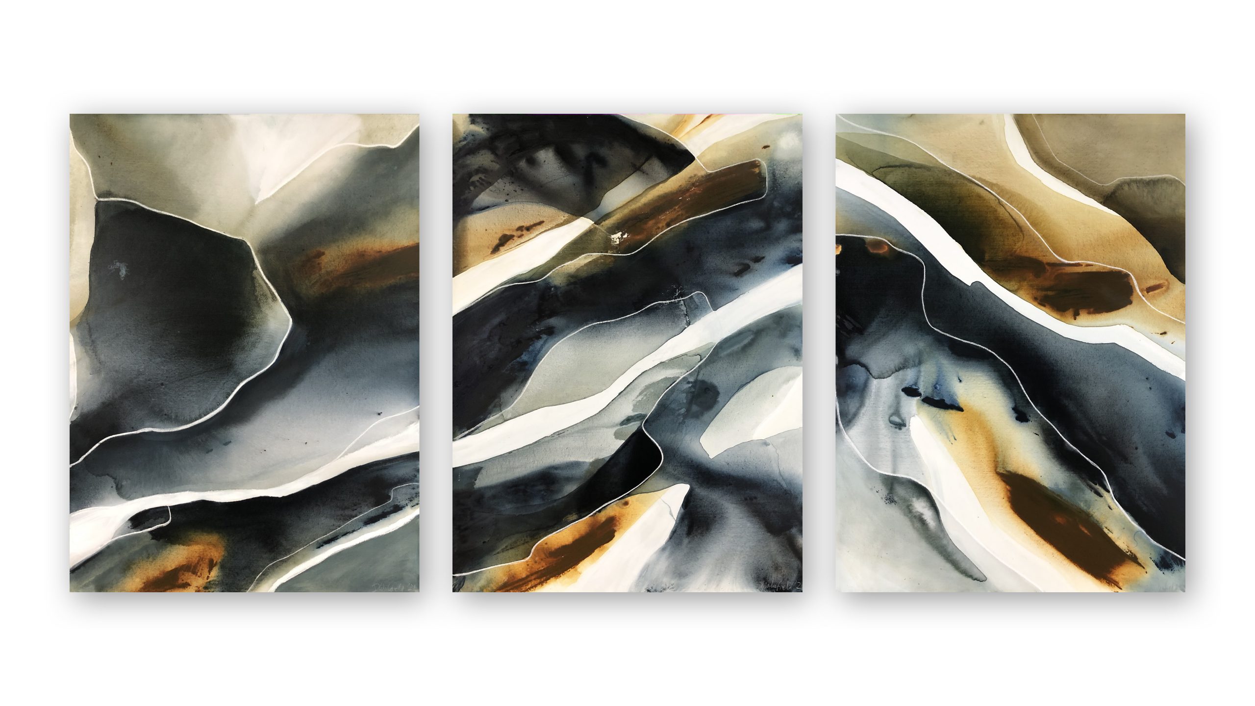 This artwork includes 3 paintings each with the dimensions 92cm W x 122cm H
