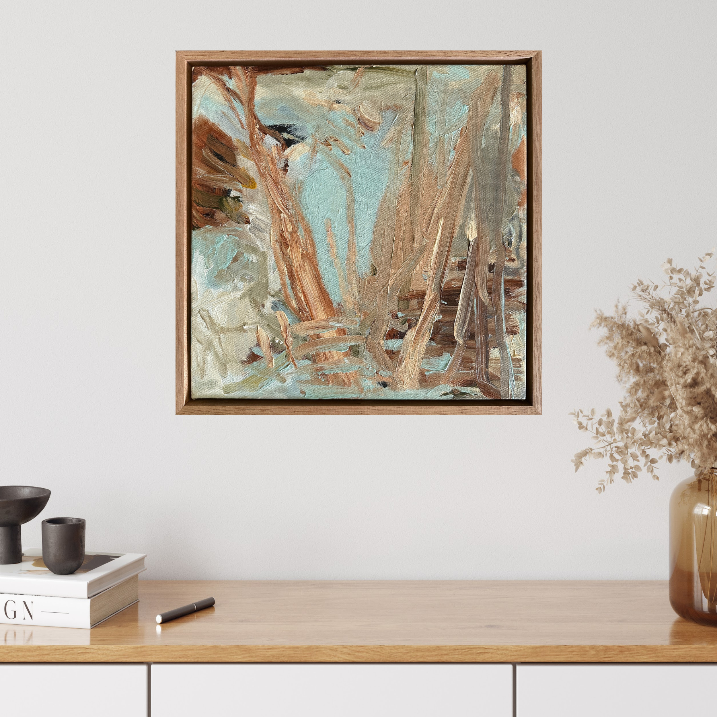 The Sticks by Kylie Sams – Original abstract painting in acrylic paint on cotton canvas, framed in natural oak.