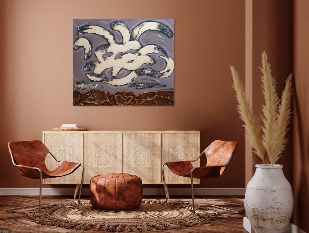 This piece is painted with layers to create texture. Wide sweeps of the palette knife have been used. Quality Acrylic on 380 gsm Canvas. 3D elements have been provided with the addition of shaped canvas and textured paint. Please see details in photo description. The surface has been covered with a protective layer of acrylic sealer which has enhanced the beautiful colours