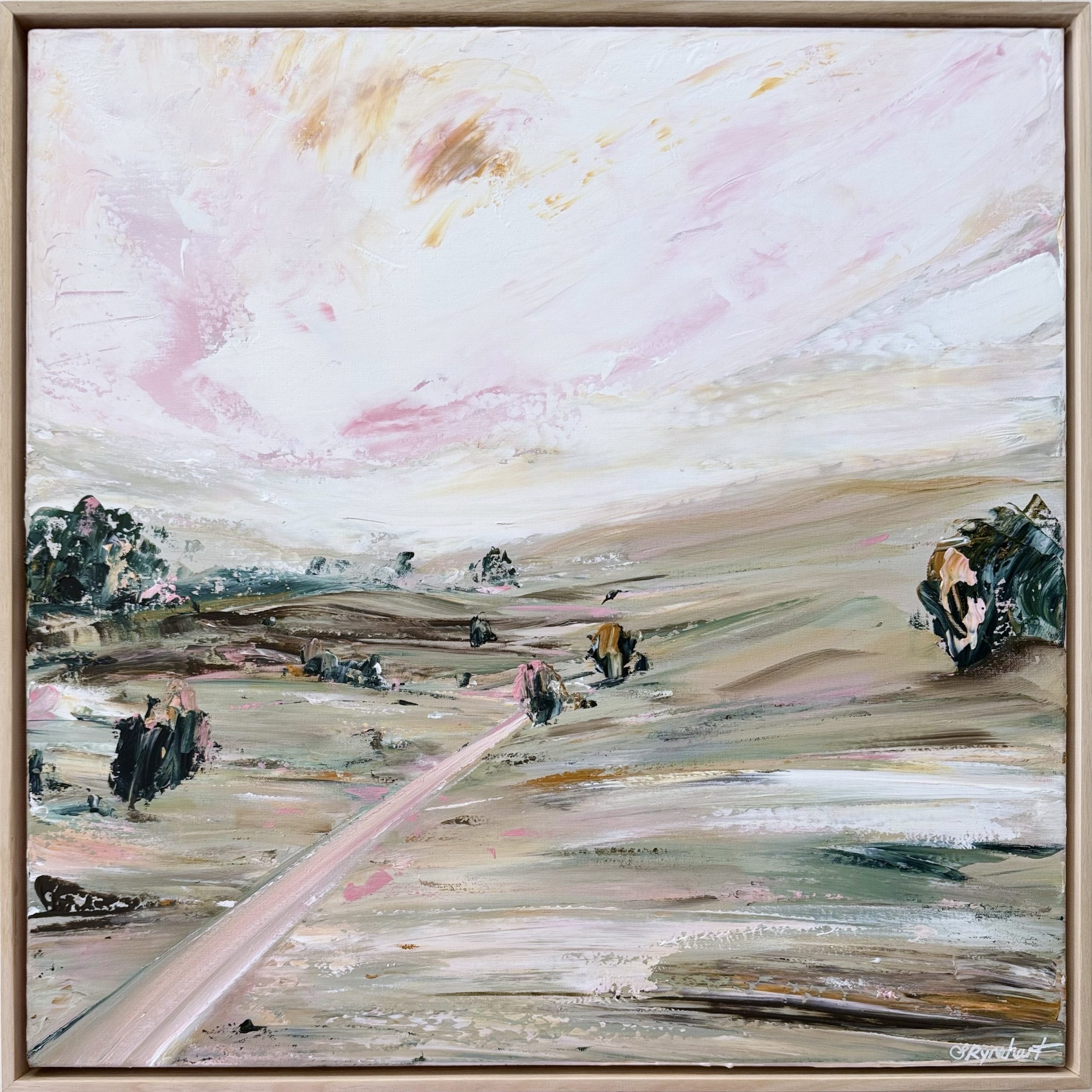 Created with a neutral soft palette on 12 oz stretched cotton, it is framed in a beautiful solid oak timber frame. It comes satin varnished and with a COA.