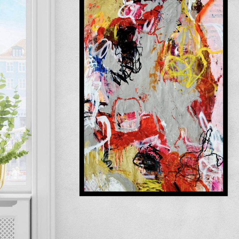 Gloss varnished with UV protection, panel edges sealed with black lacquer. Ready to hang with D-hooks and cable.