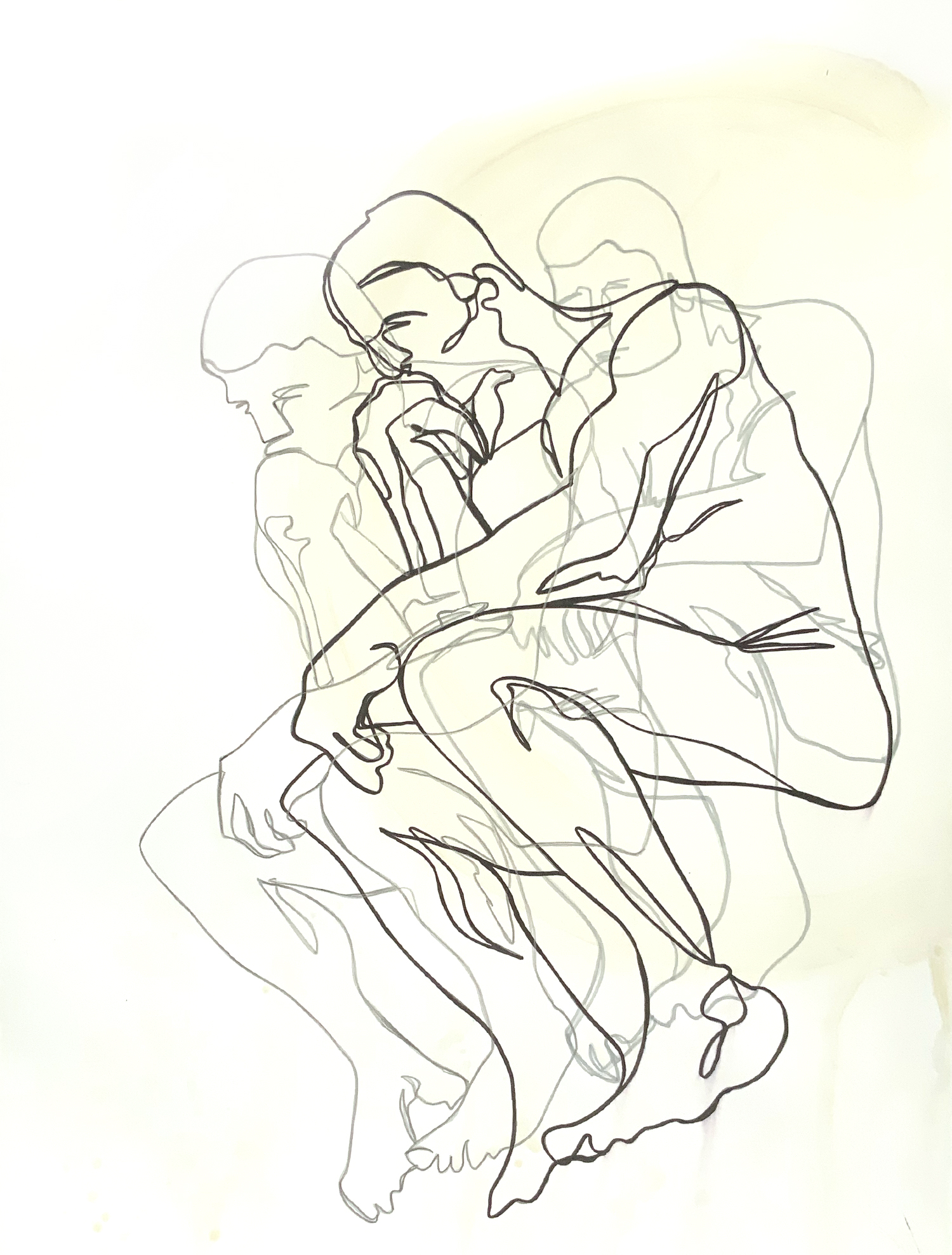 The Thinker, After Rodin – by Leni Kae. Inspired by Robin’s “The Thinker”, this artwork is line art drawing by Sydney artist and illustrator Leni Kae, featuring a nude man in the classic “thinker” pose. Created using ink, pencil and watercolour on 300 gsm paper.