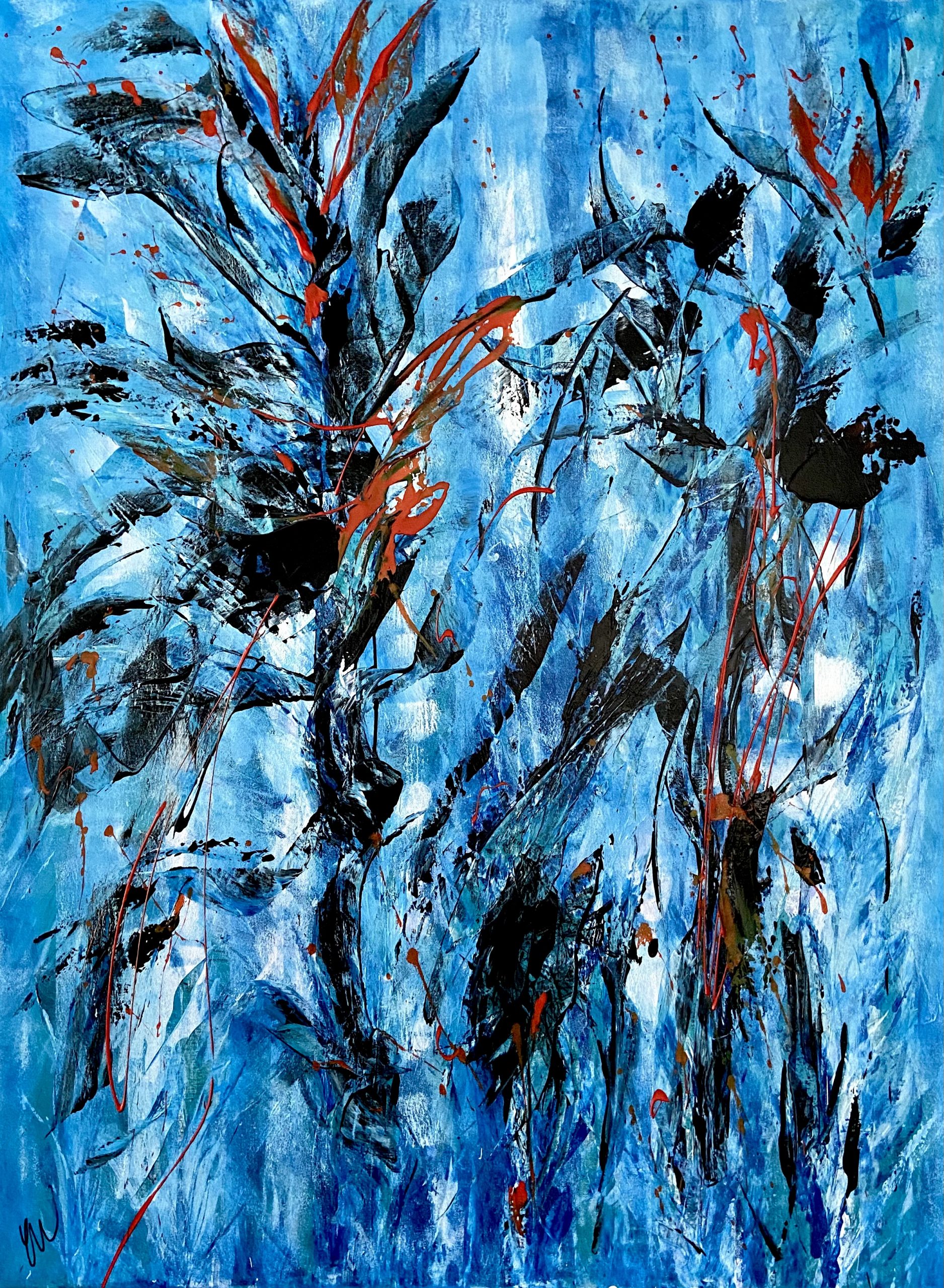 The Unexpected by Carrie Welsh is a beautiful abstract painting with lots of captured energy and movement. This statement piece has lots of beautiful details and texture. A grand focal point in any space! 121.9 x 91.4 cm. Acrylic on canvas, ready to hang. Please note images show what this painting will look like framed. Frames are not included.