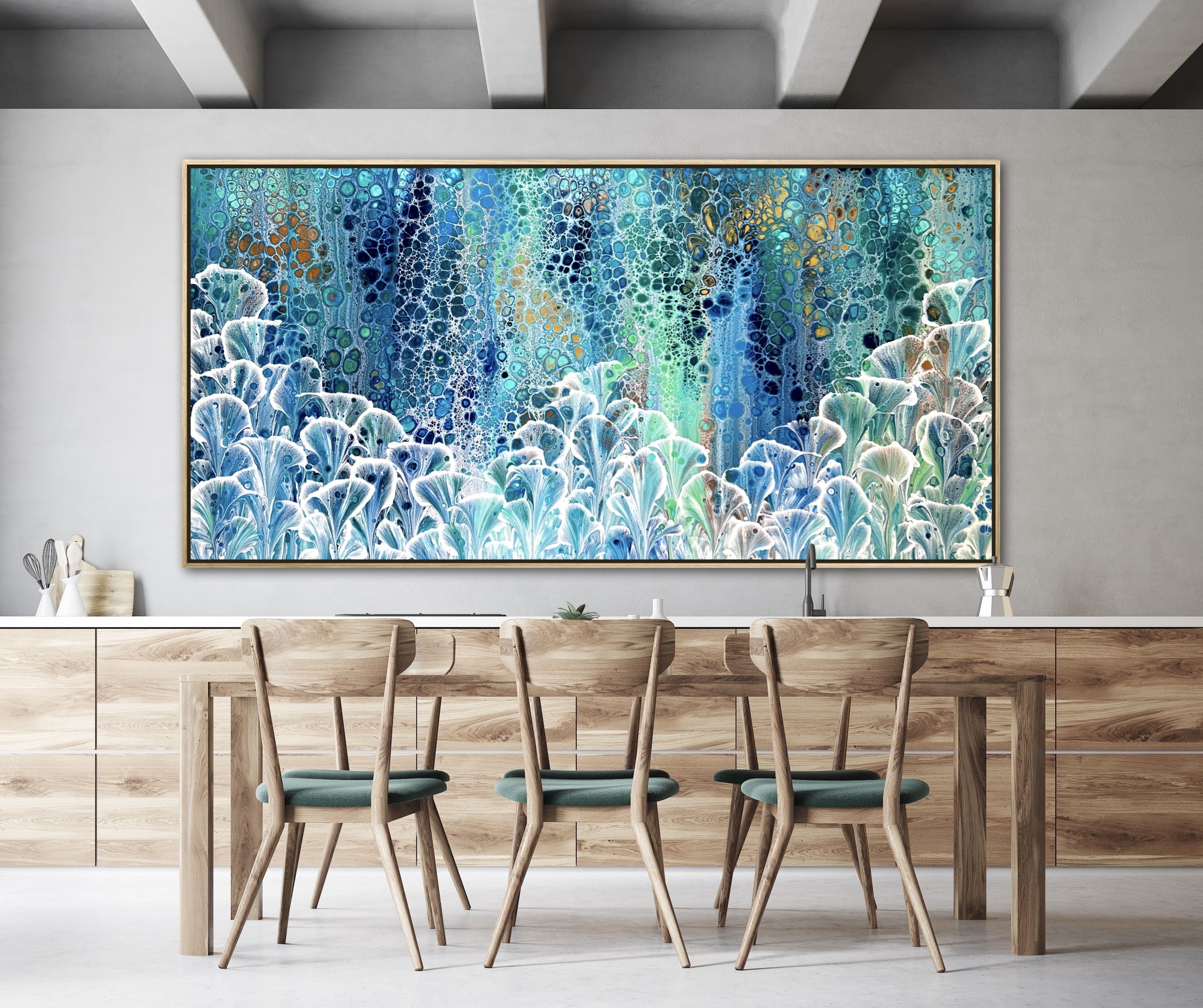 This artwork is available now and is ready to hang. It will leave my studio within 3 business days. The painting continues down the sides of the canvas so there is no need to frame. The greatest of care is taken with all my artwork and it will be carefully wrapped in bubble wrap and sturdy cardboard. Packaging and delivery within Australia are included in the artwork price.
