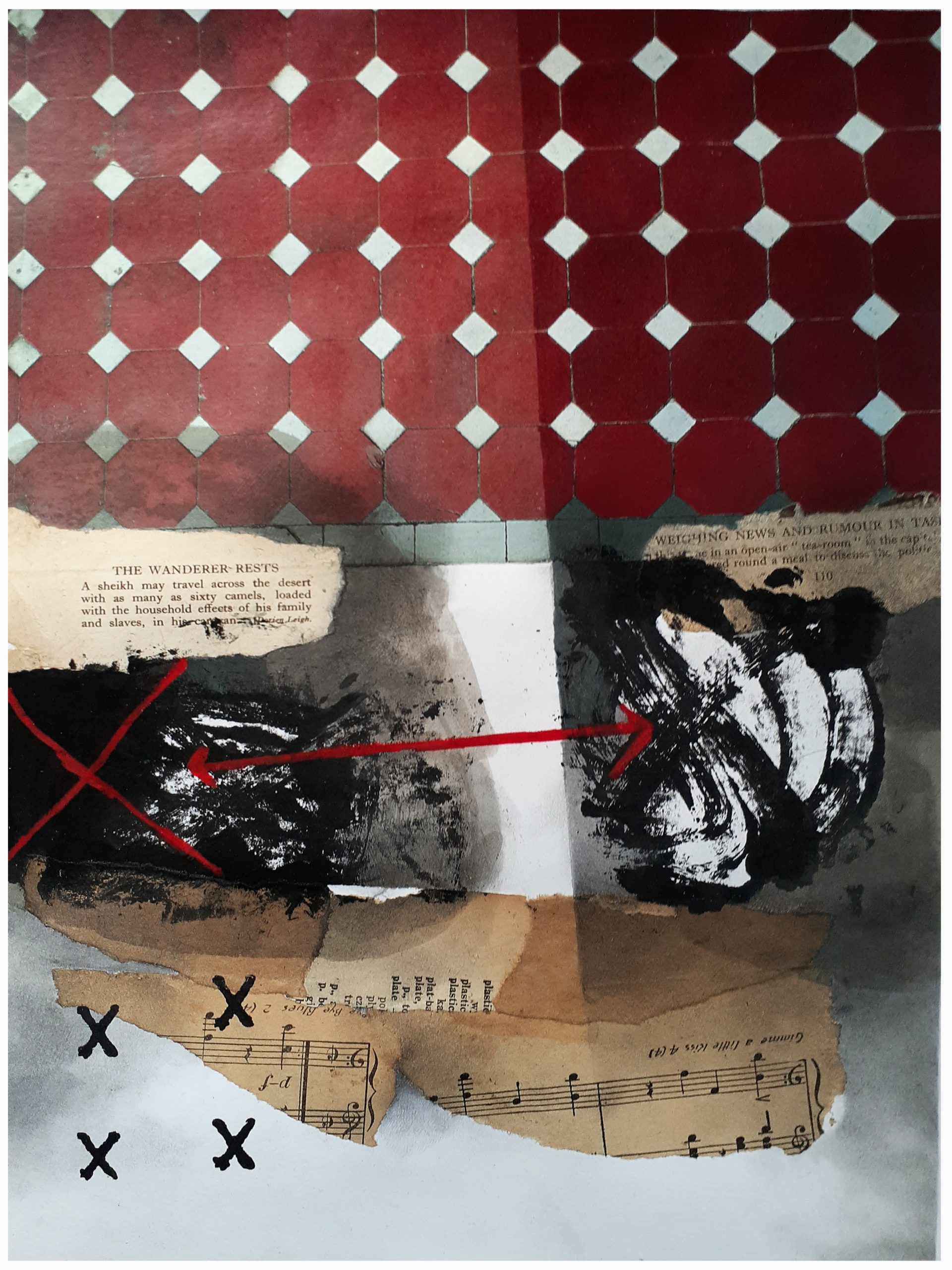 “The Wanderer” is an original mixed media artwork by Melbourne abstract artist G Kustom Kuhl. The work has a striking [top half] pattern in a deep red that almost mesmerises the viewer to begin the exploration of what’s been created below. The study of the conscious and subconscious, the actions, the thoughts and feelings that make up everyday movements. Created using vintage papers, oil sticks, pencils, paint and forms that have been hand printed onto the artist quality paper to make up this original mixed media artwork. Artwork has been signed and titled at the bottom of work and comes supplied with a certificate of authenticity. The work will require framing for hanging and finish.