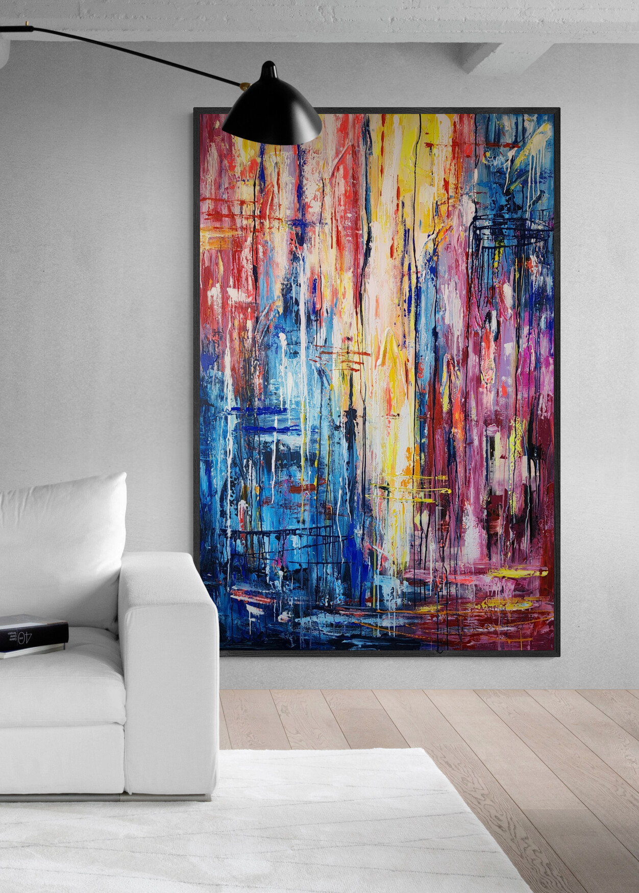 This beautiful modern piece is made with lots of layers of texture and drips of acrylic paint.