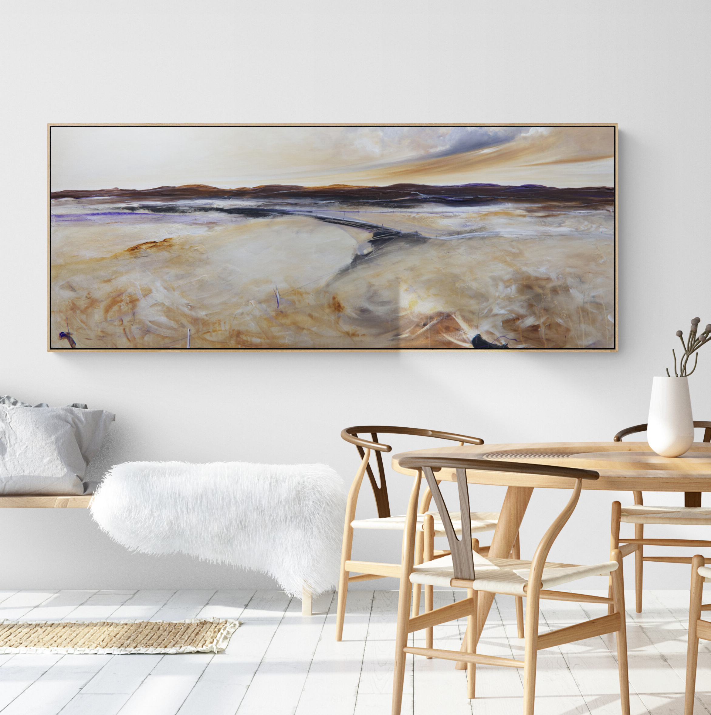 The Western Road by Tania Chanter inspired by the rich and vibrant tones of the Australian landscape and the changes of light and mood throughout the day. Tania’s hope is that this painting brings a sense of calm to the room where it lives, and that is makes the people who enter the room feel as though a part of nature is right there with them.