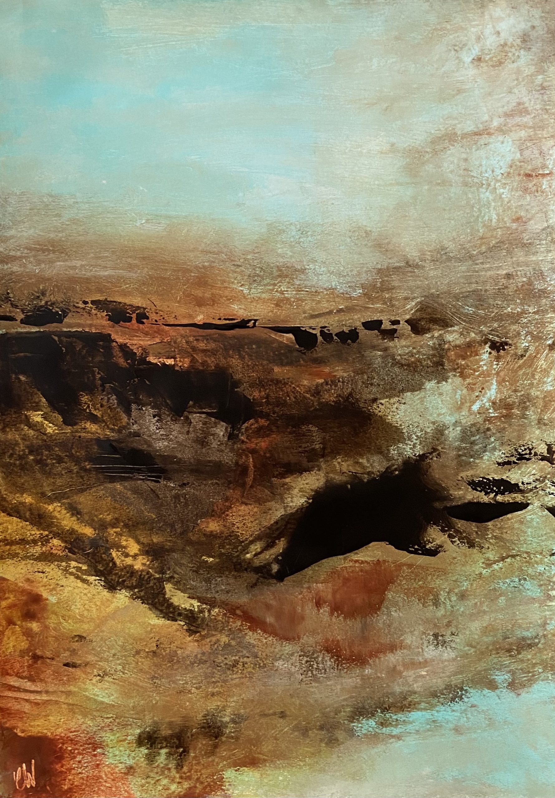 A beautiful abstract landscape painting. 59.4 x 42 cm (A2 size). Acrylic on paper. Frame not included. Requires framing.