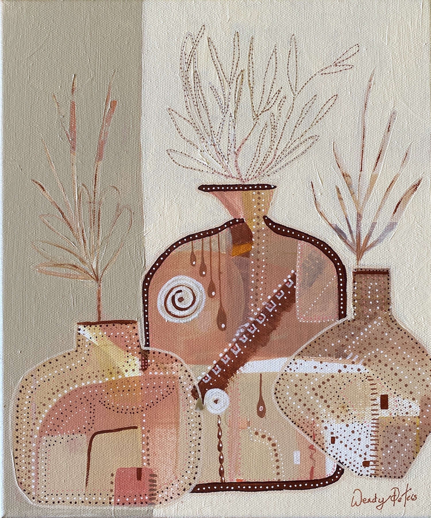 There is something about different shaped vessels that inspires me, used in so many different ways, to celebrate, to commiserate, to hold flowers, water, or just ornamental. Ancient, new, ceramic, porcelain, metal, earthenware, glass. I collect many, and although I often use them in my still life paintings, these cute little Firkins were from my imagination, using block out and mark making details in a fun and playful way they create a lovely grouping if bought together but work equally well on their own, and even more special is framed in a Tasmanian Oak Float Frame.