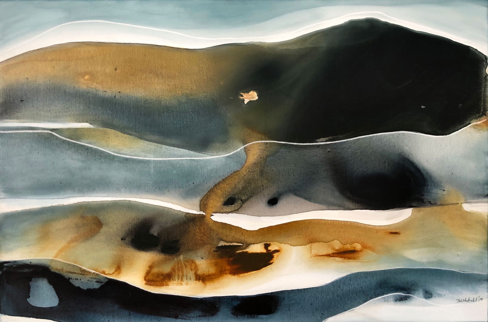Thera 2 is inspired by the light, the colours and the natural beauty of the Noosa region of Australia. “What I love most about Noosa is the interplay of light. From the oceans to the clouds, to the river estuaries and the hinterland, this canvas unfolds before me every day and finds expression in my paintings”.