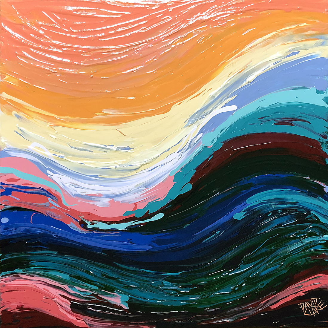 There Is A Light That Never Goes Out by David Clare – Original abstract painting of a sunset over the beach. I got slightly carried away with this painting, I couldn’t resist pouring more and more paint onto the canvas. The paint was so thick that I manipulated it across the canvas in waves of colour. Rich, thick, textured and very colourful