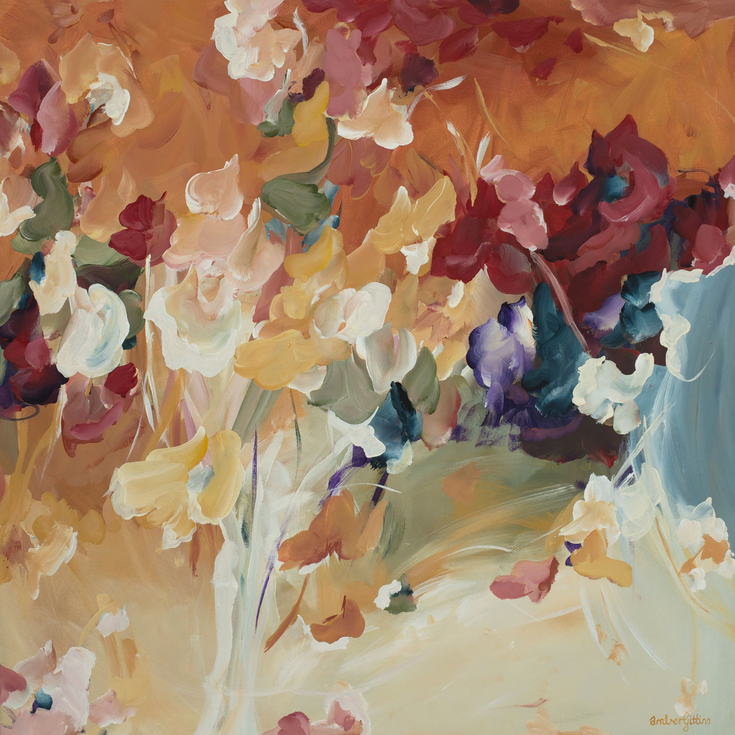 Abstract Botanical artist Amber Gittins has a love for colour and movement in her paintings. She uses acrylics as she loves the fast drying time of acrylic paints, which helps in the creation of the natural flowing movement that give her that signature style. Her colour palettes are ever changing with each piece, which can also coincide with her current mood and also varies depending on the time of year and season she is in. Nature is her constant inspiration and she loves to explore outside and take long walks in nature regularly. Amber’s artworks invoke joy and calmness within the viewer and have created a modern unique addition into collectors homes worldwide.