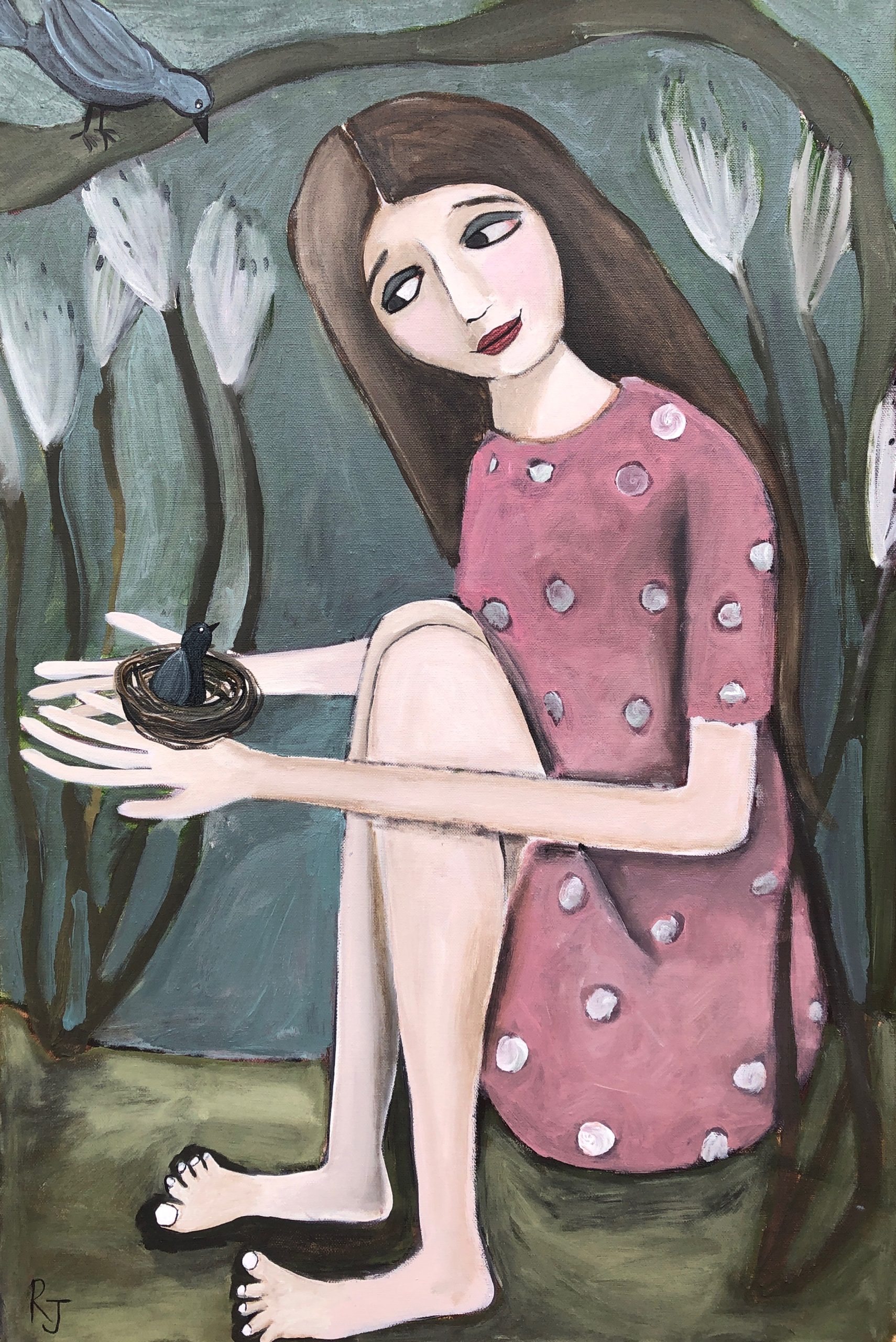 I hope that my art captures something true about the world — the beauty of the ordinary, the complexity of human interaction, the intensity of an emotion. My art is largely figurative and I attempt to represent what I see and experience with a sense of appreciation and humour. My work is colourful and eye-catching and can tend towards the naive, sometimes incorporating elements of fantasy. I like my art to tell a story, to prompt the viewer to think ‘I know exactly how that feels,’ or to inspire a sense of joy, longing or nostalgia.