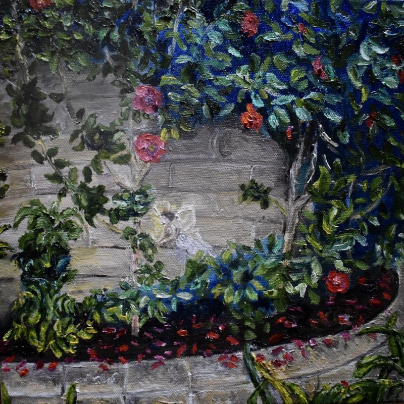 This painting subtly contains the bible passage: See, I am doing a new thing! Now it springs up; do you not perceive it? I am making a way in the wilderness and streams in the wasteland. Isaiah 43:19.