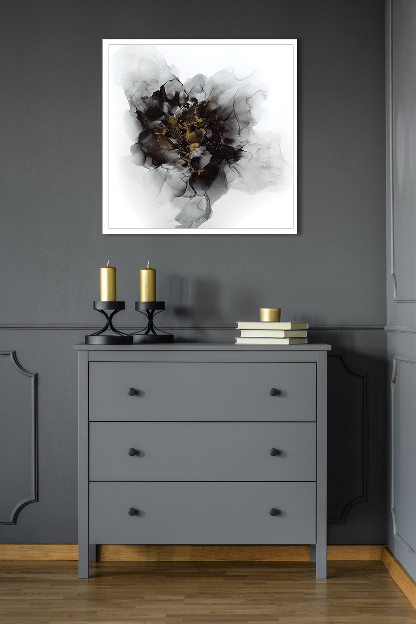 An unframed original artwork created with a monochrome black and gold palette. The artwork features beautiful metallic brassy gold highlighting throughout.
