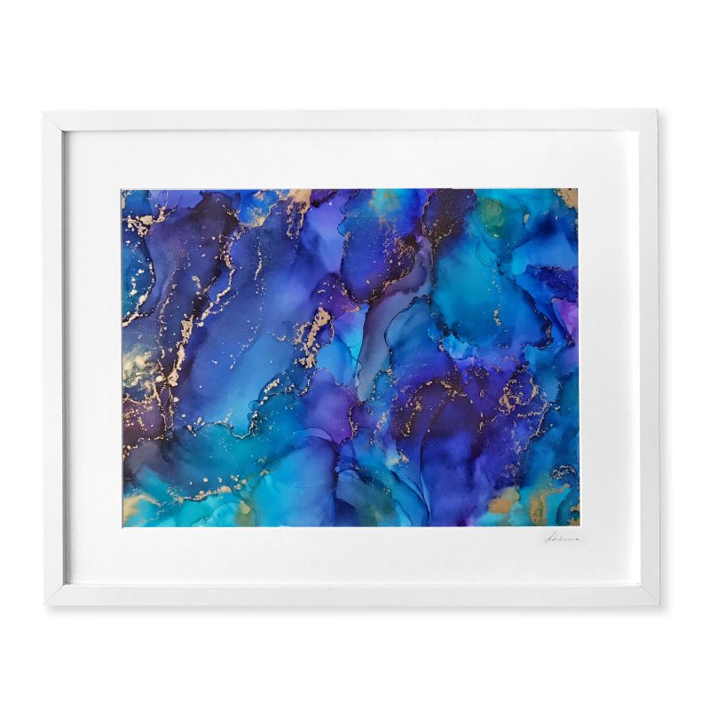 The medium used is alcohol dye ink on heavyweight Yupo synthetic paper. The original artwork is unframed and 80 x 80cm in size. Sealed with UV protective varnish ready for framing. Signed on front.