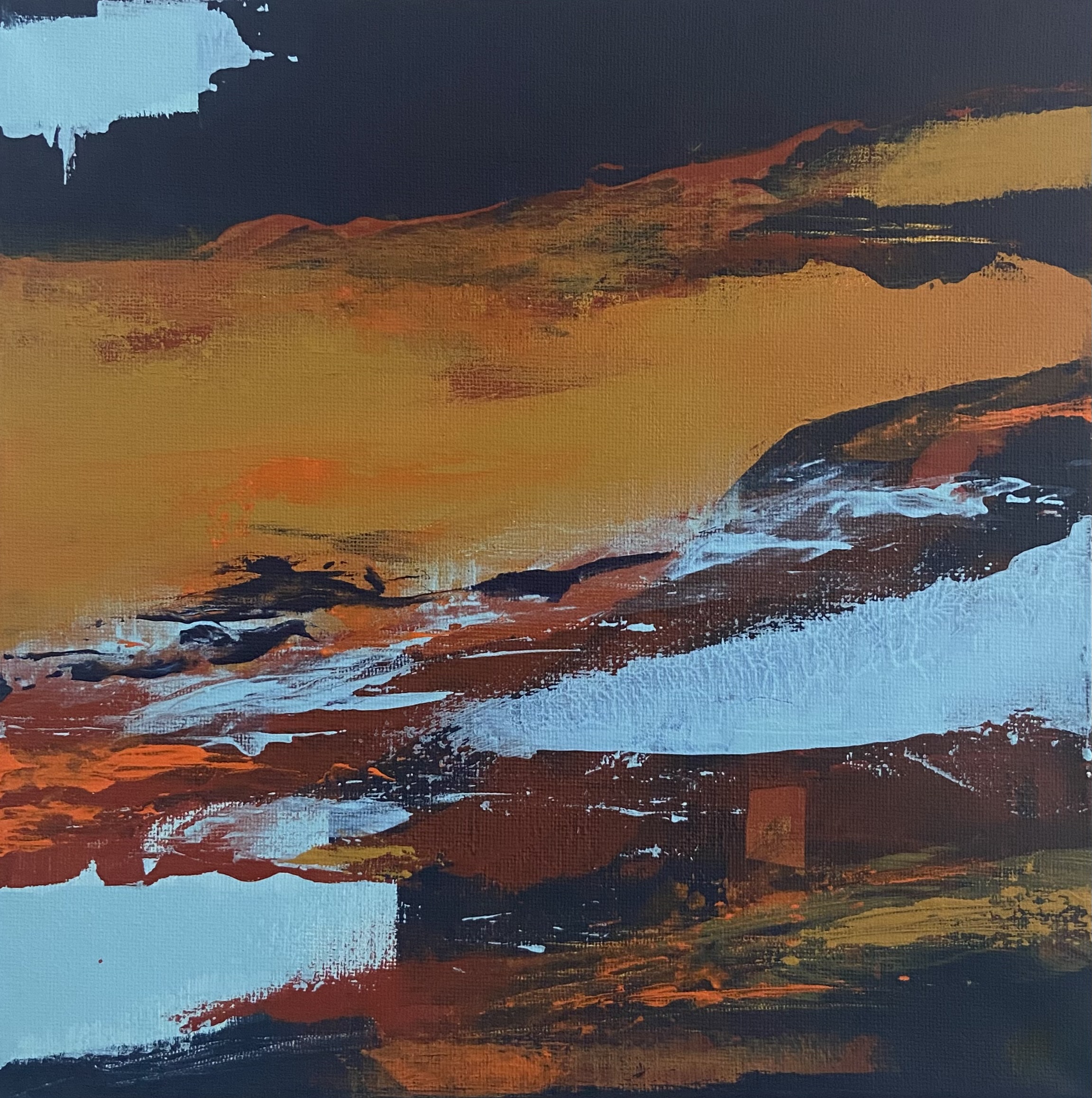 Those Days by Carrie Welsh is a beautiful abstract landscape painting. 25 x 25 cm. Acrylic on canvas, ready to hang. Frame not included.