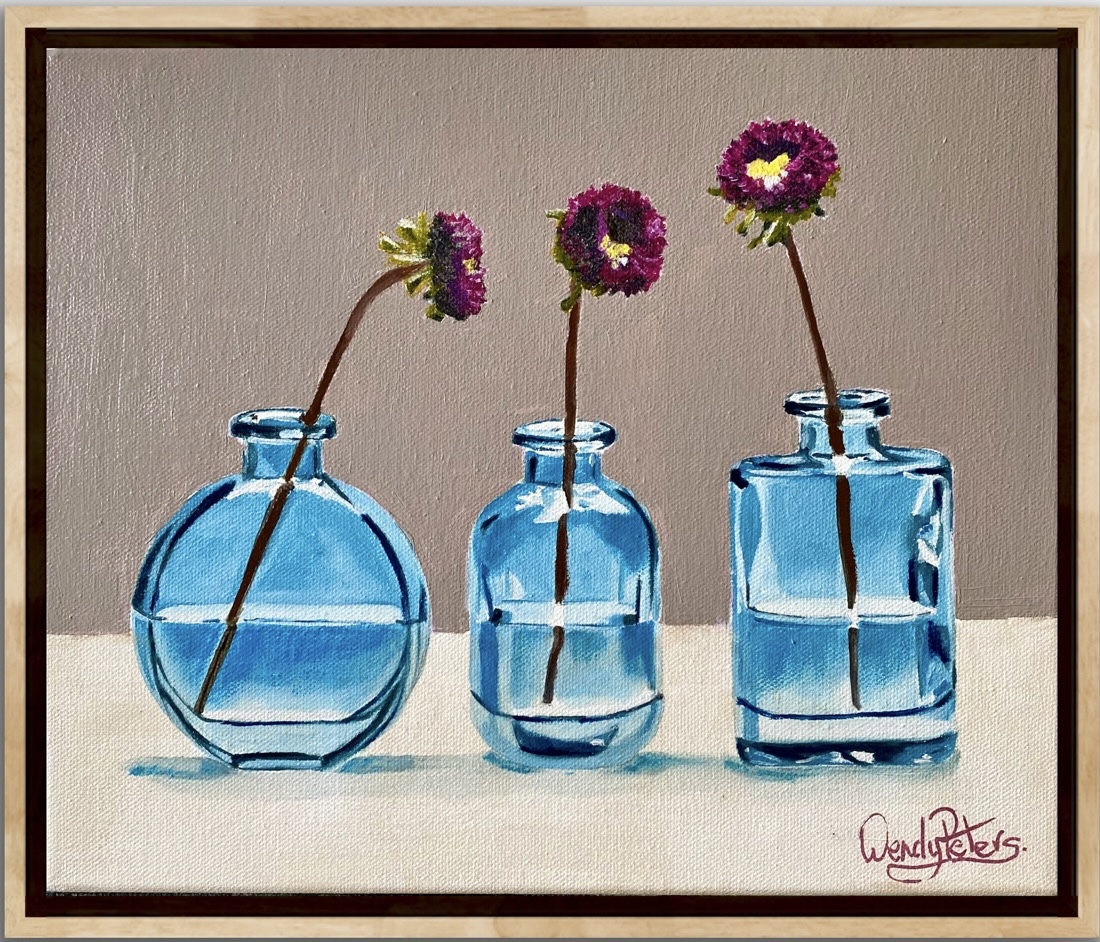 It’s a delight to recreate these delicate and elusive images on canvas. Each of my glass paintings feels like a little adventure, an exploration into the relationship between light and glass. I love to capture something intricate and captivating in a simple, but meaningful way.
