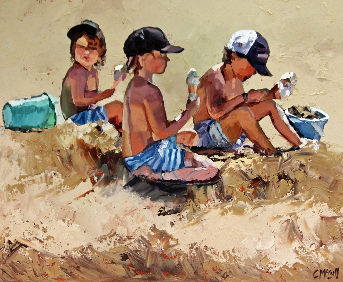 Three Boys by Claire McCall – ‘Summer would not be summer without ice-cream!’ Three friends enjoy icecream at the beach.