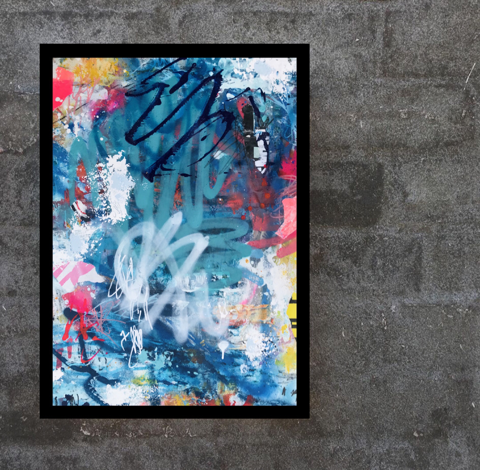 This artwork has a textured finish created by built up layers, paint splatters and torn paper, a visual effect mimicking the look you would see in the street where this effect is created over time on Graffiti Walls & Advertising Spaces. These imperfections are part of the overall look and feel of the finished work.