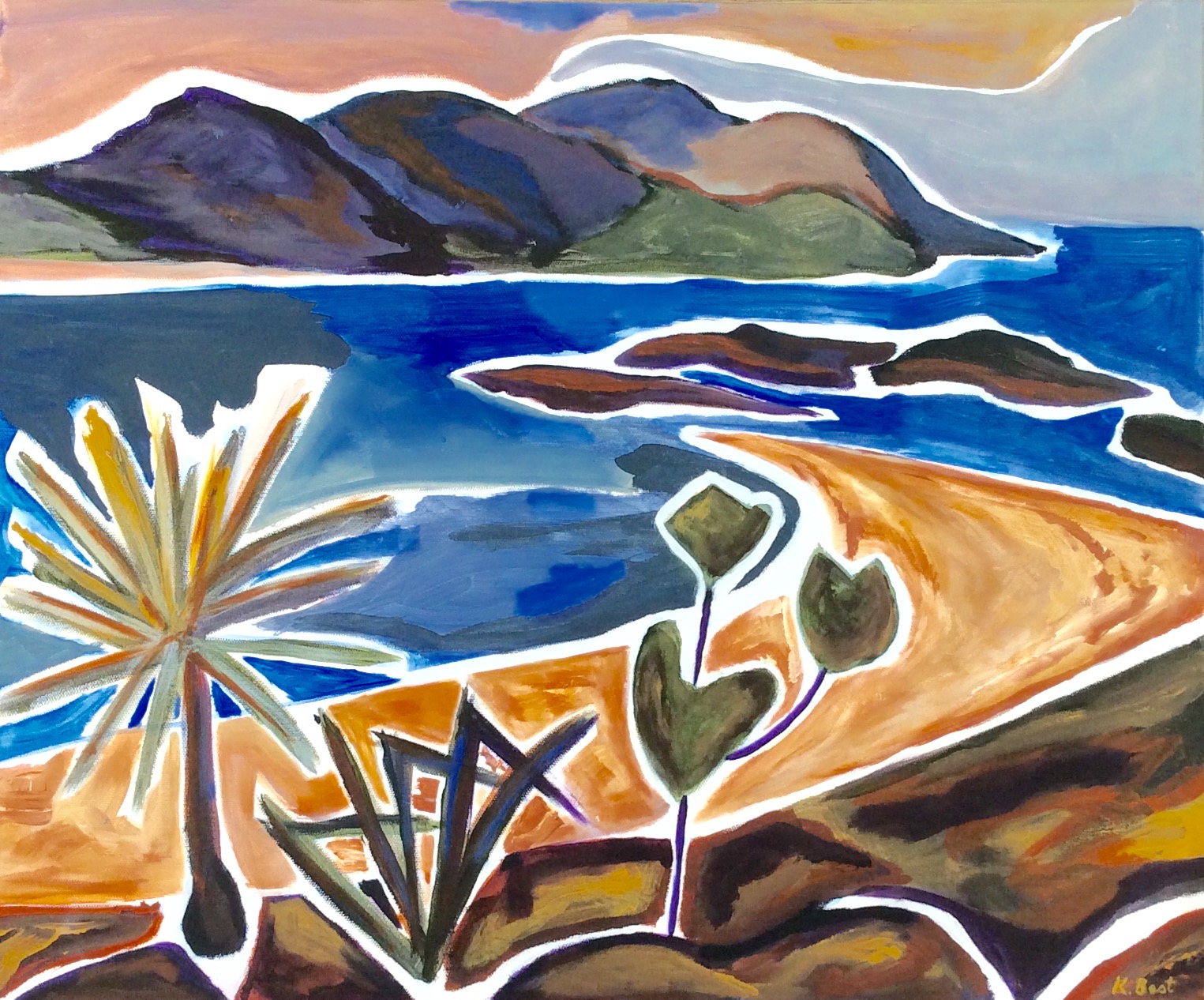 Based on a photo I took of the beautiful Matai Bay on the north island of New Zealand.