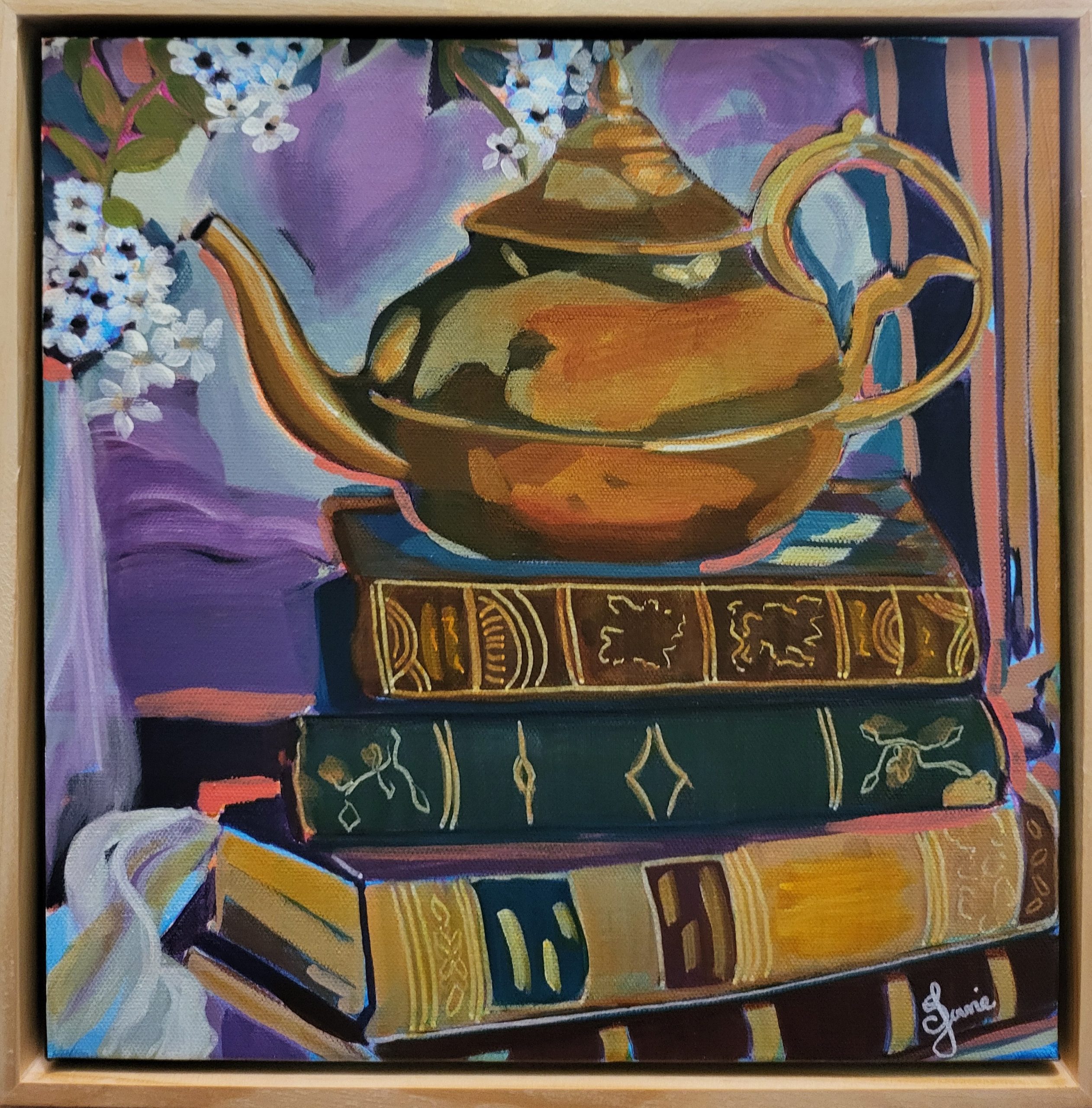 This is an acrylic painting on canvas. It is framed and ready to hang with d-hooks and wire. This artwork is sealed with a satin varnish.