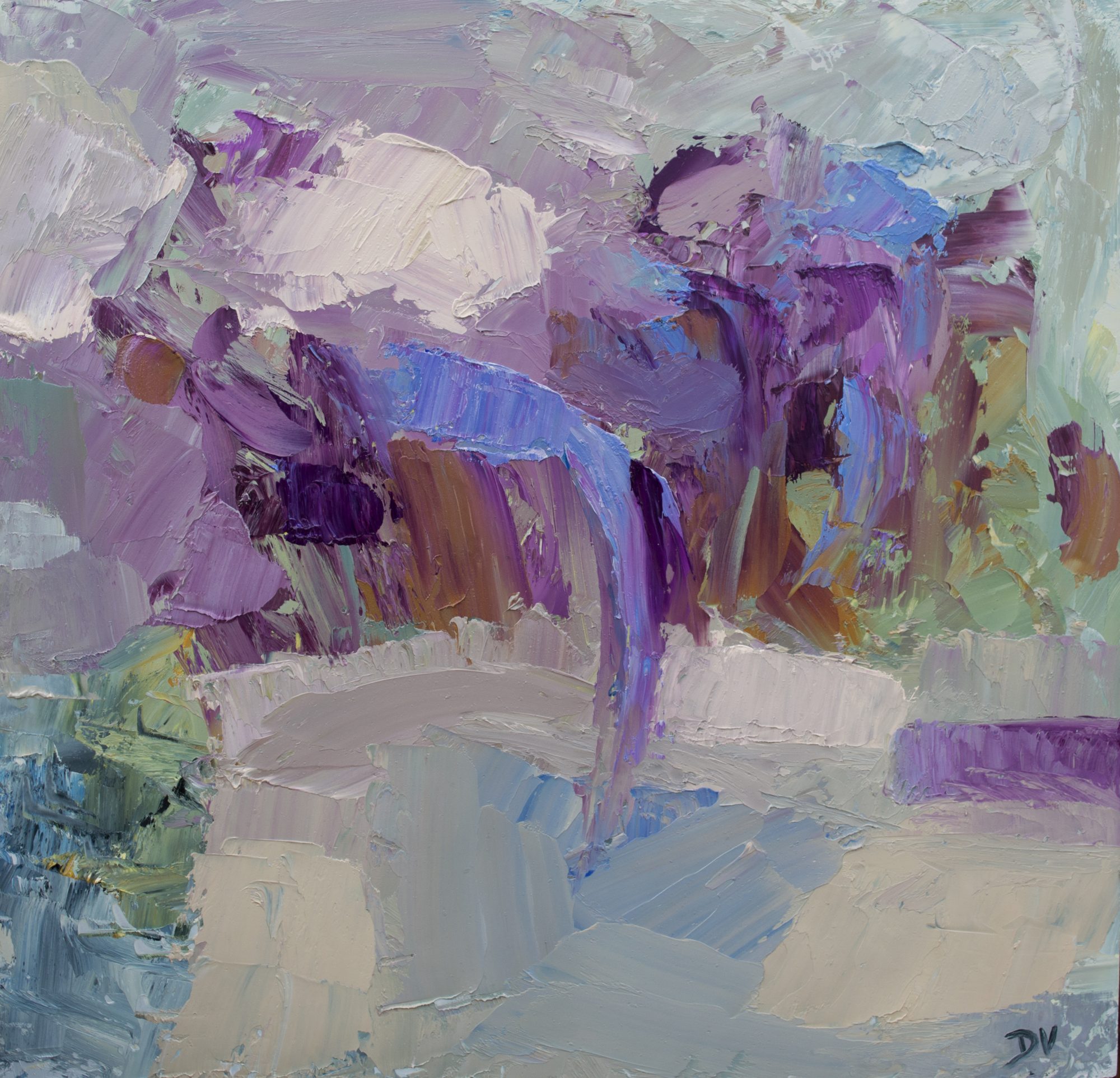 Painted with palette knives for textured mark making and vivid colour.